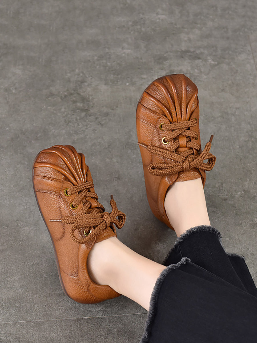 Women Retro Genuine Leather Spliced Flat Shoes