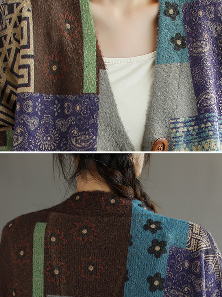 Plus Size Pocket Stitching V Neck Long Sleeve Sweater Coat