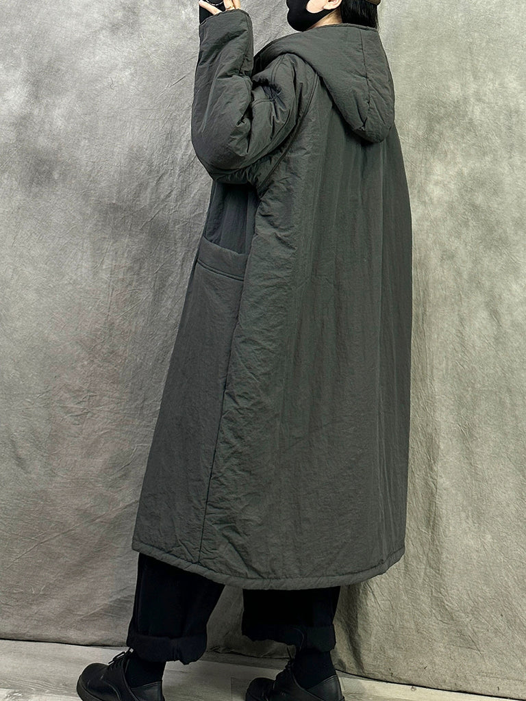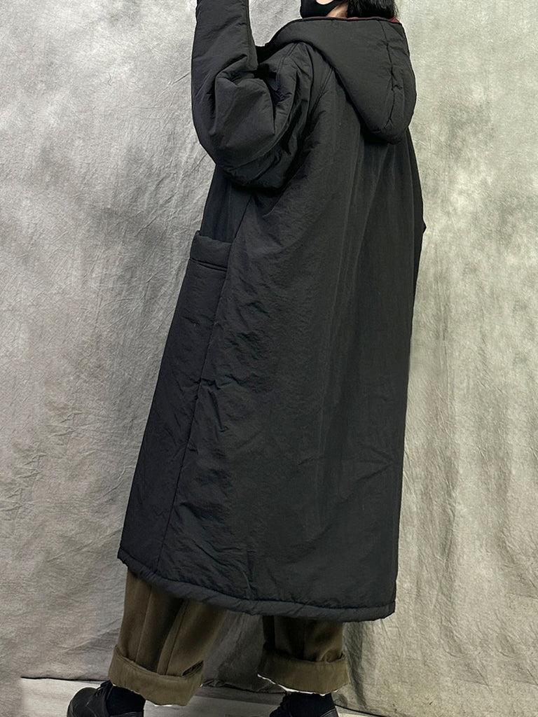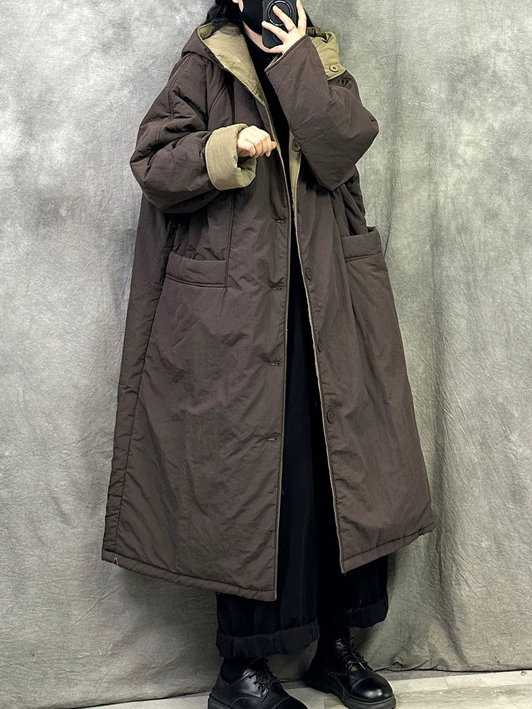Women Winter Pure Color Dual-side Wearring Hooded Long Coat