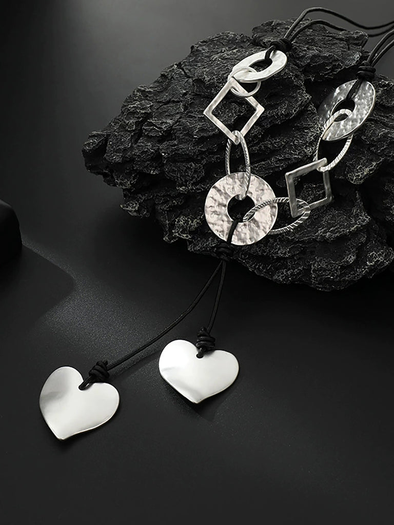 Fashion Irregular Alloy Heart Geometric Pendant Long Necklace