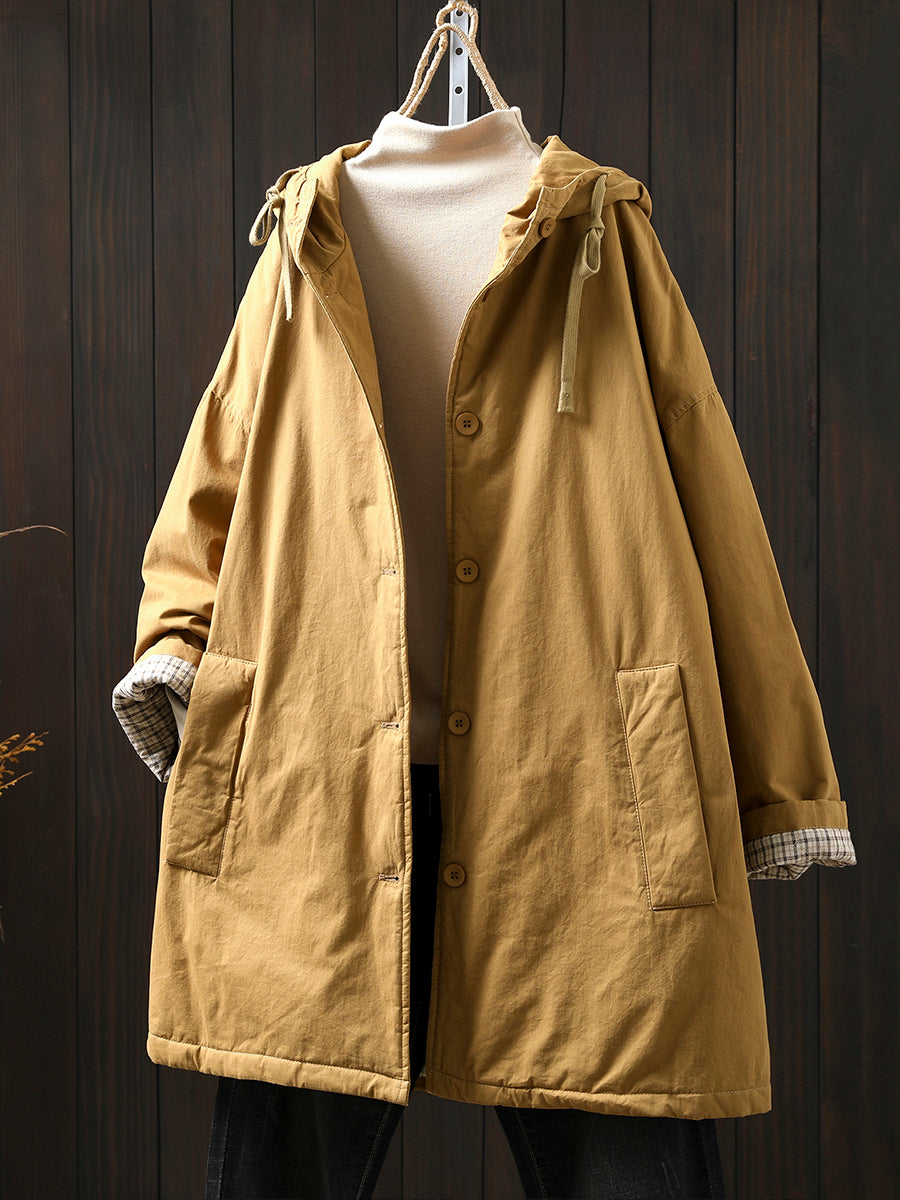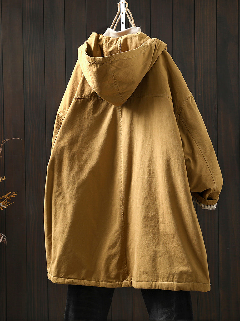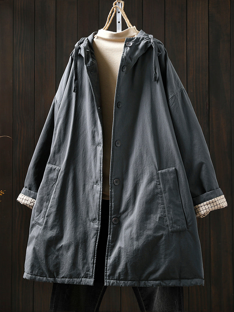 Women Winter Pure Color Padded Hooded Coat