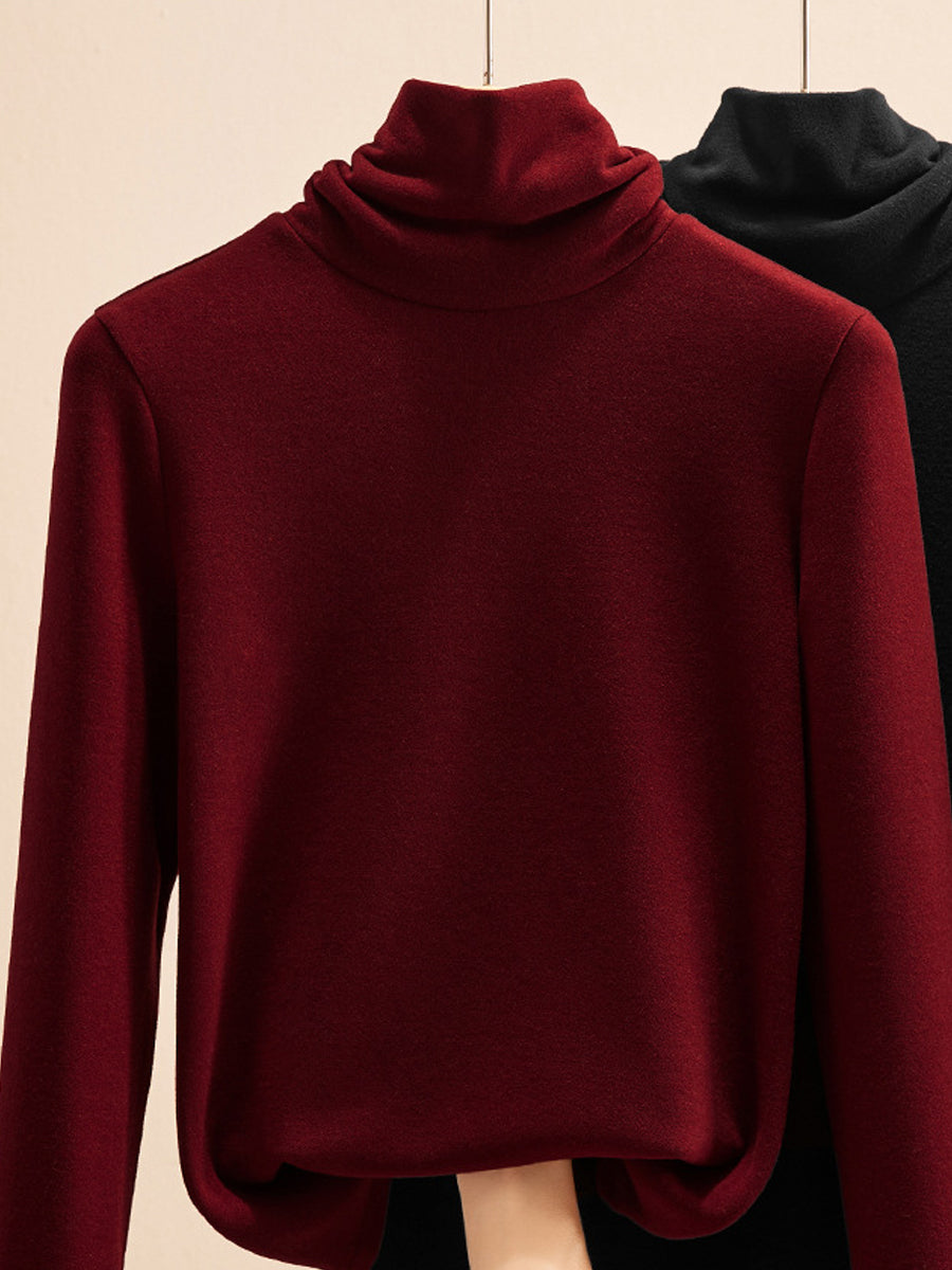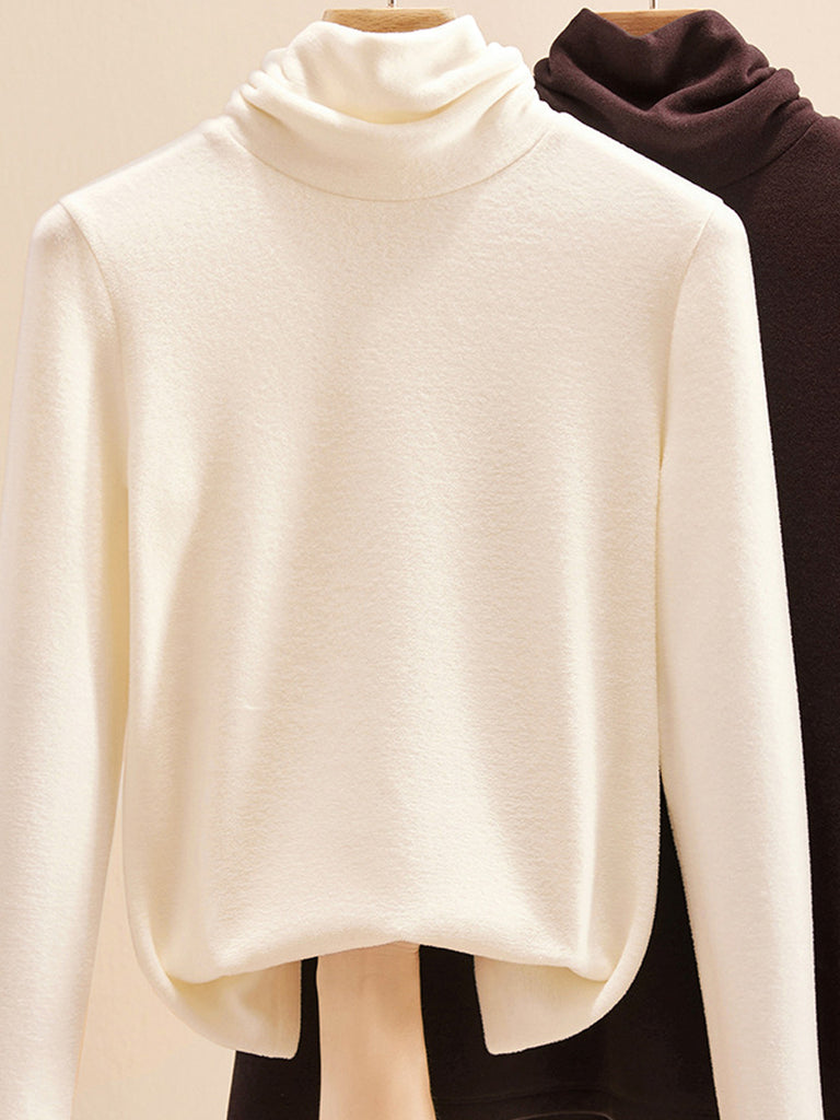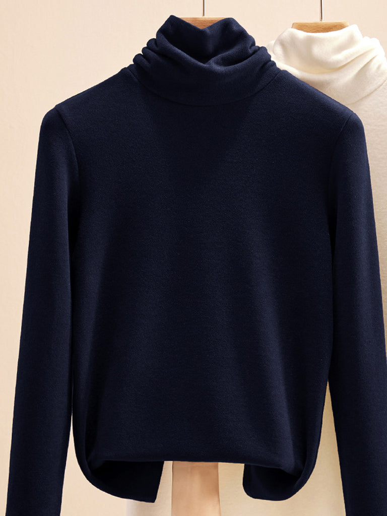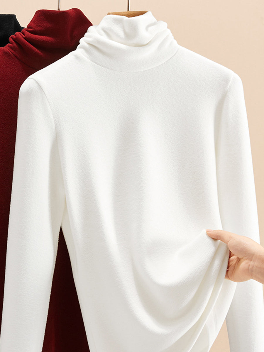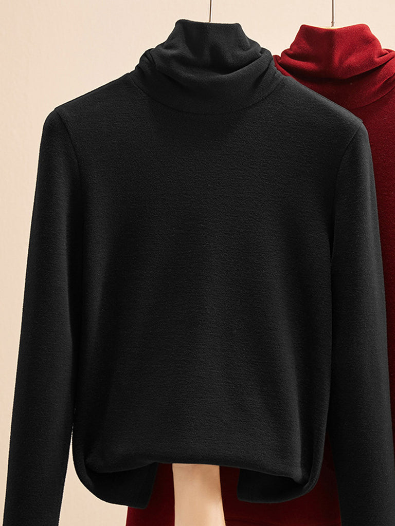 Women Winter Pure Color Turtleneck Bottom Blouse