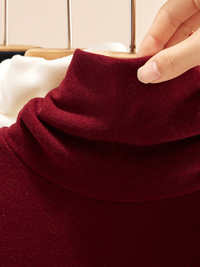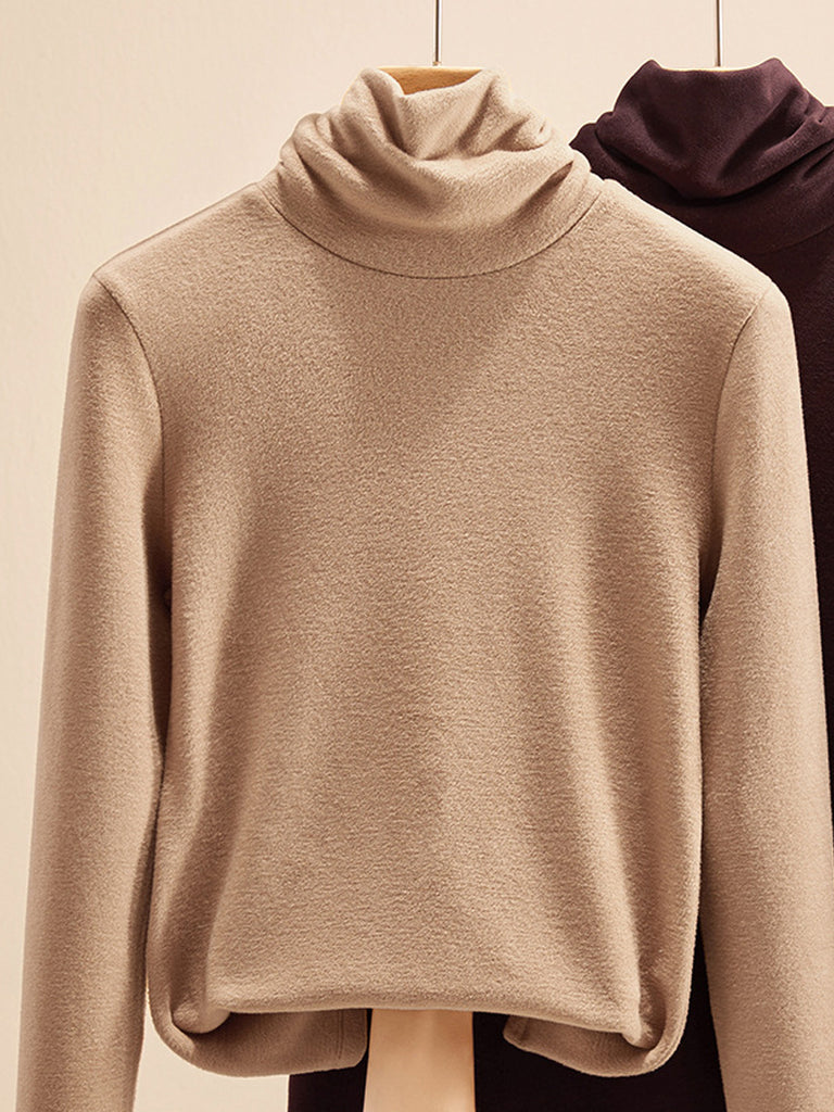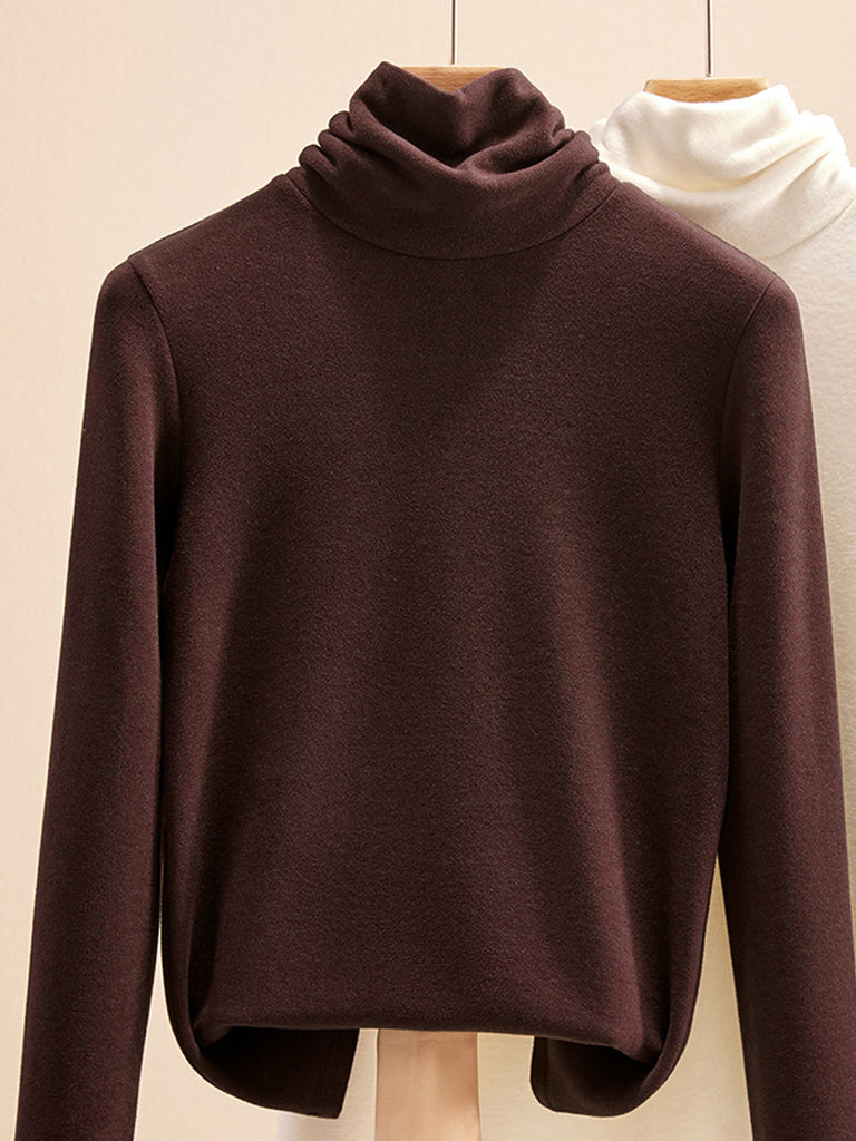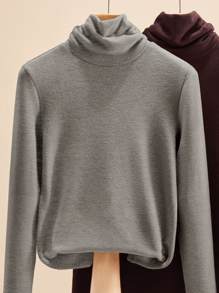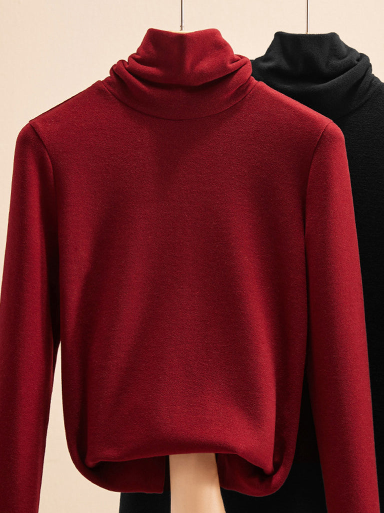 Women Winter Pure Color Turtleneck Bottom Blouse