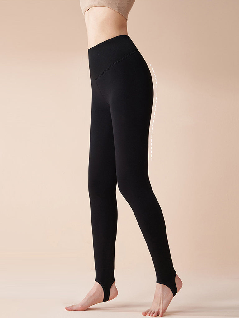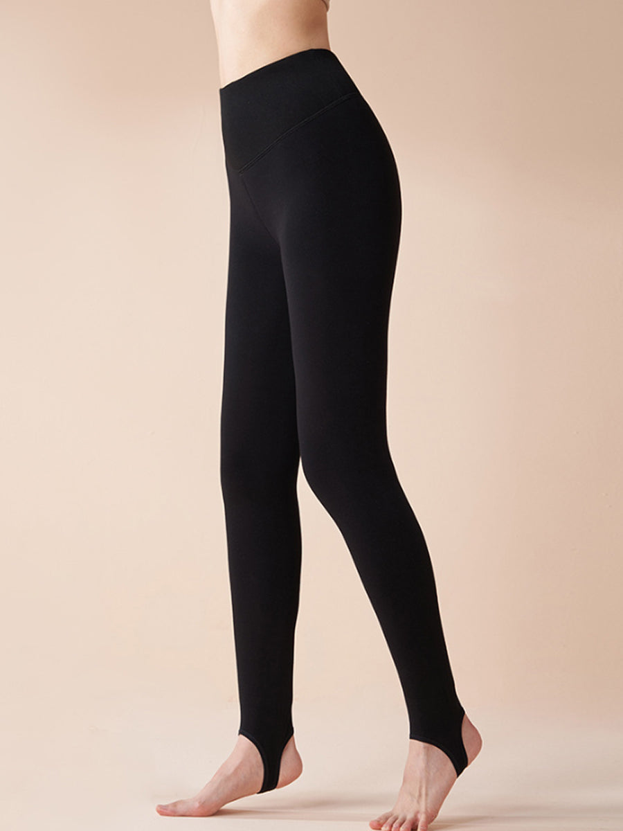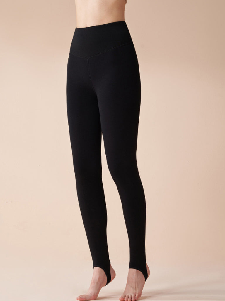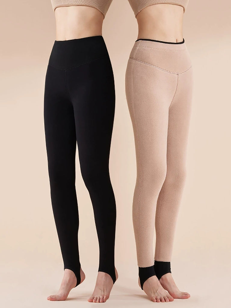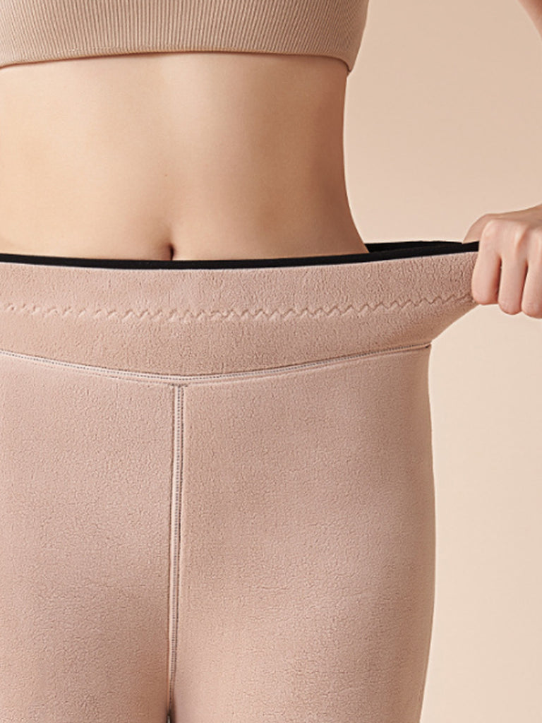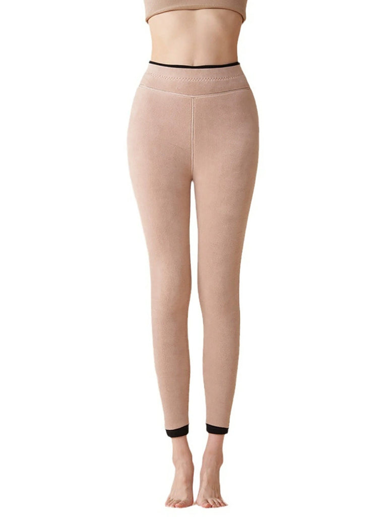 Women Autumn Warm Pure Color Fleece-lined Leggings