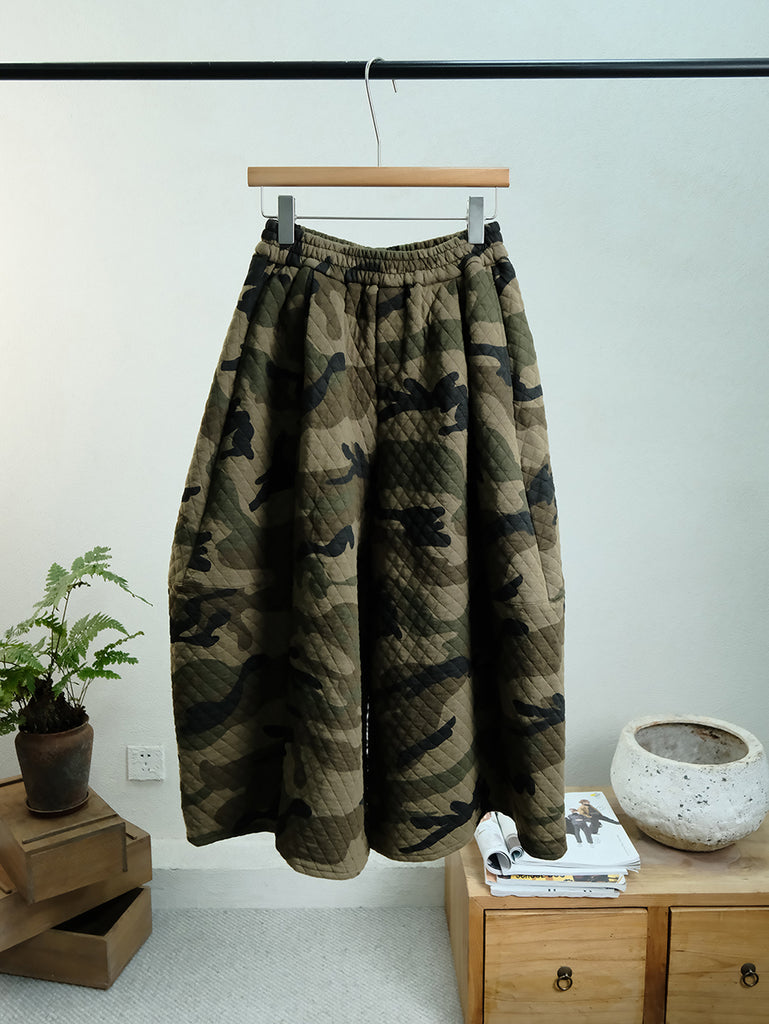 Women Winter Dot Camouflage Padded Wide-leg Pants