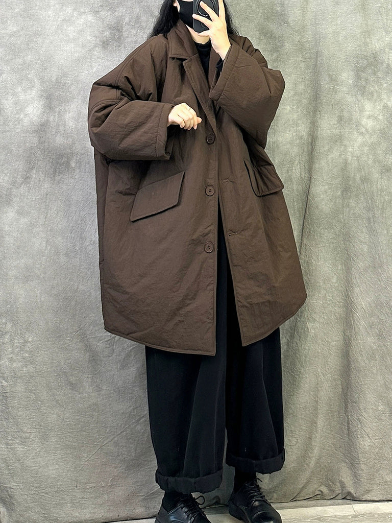Women Winter Pure Color Turn-down Collar Padded Coat