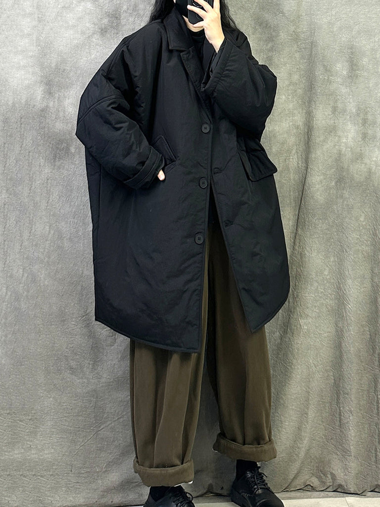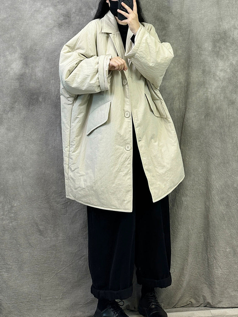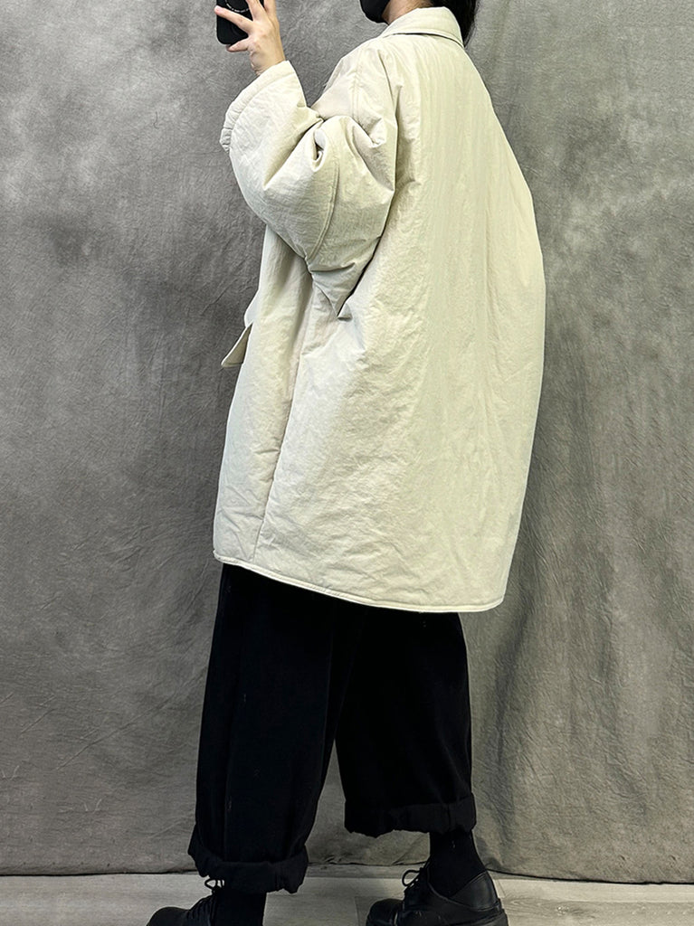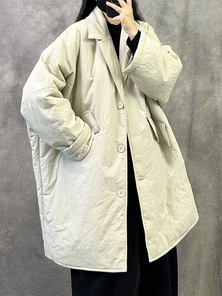 Crafted from quality cotton, this winter essential features a refined turn-down collar and full-length raglan sleeves that deliver both comfort and timeless style. The pure color palette ensures versatile pairing with any wardrobe, while the structured silhouette channels retro aesthetics. Designed for autumn and winter seasons, this padded coat provides reliable warmth without compromising on sophisticated elegance.