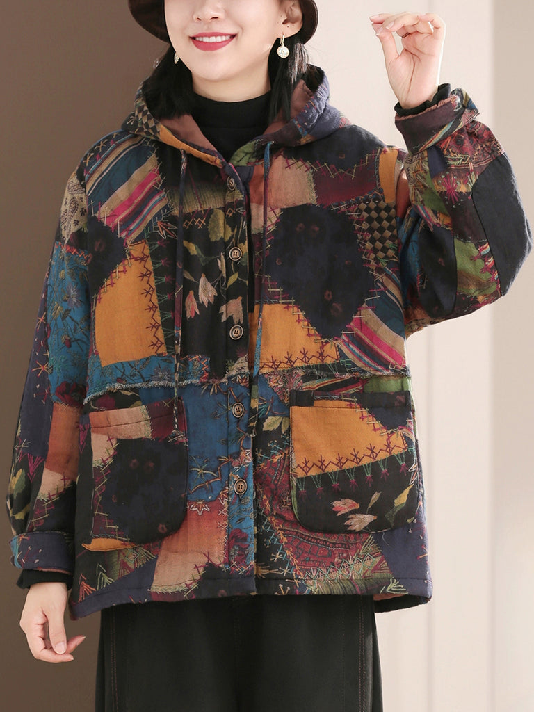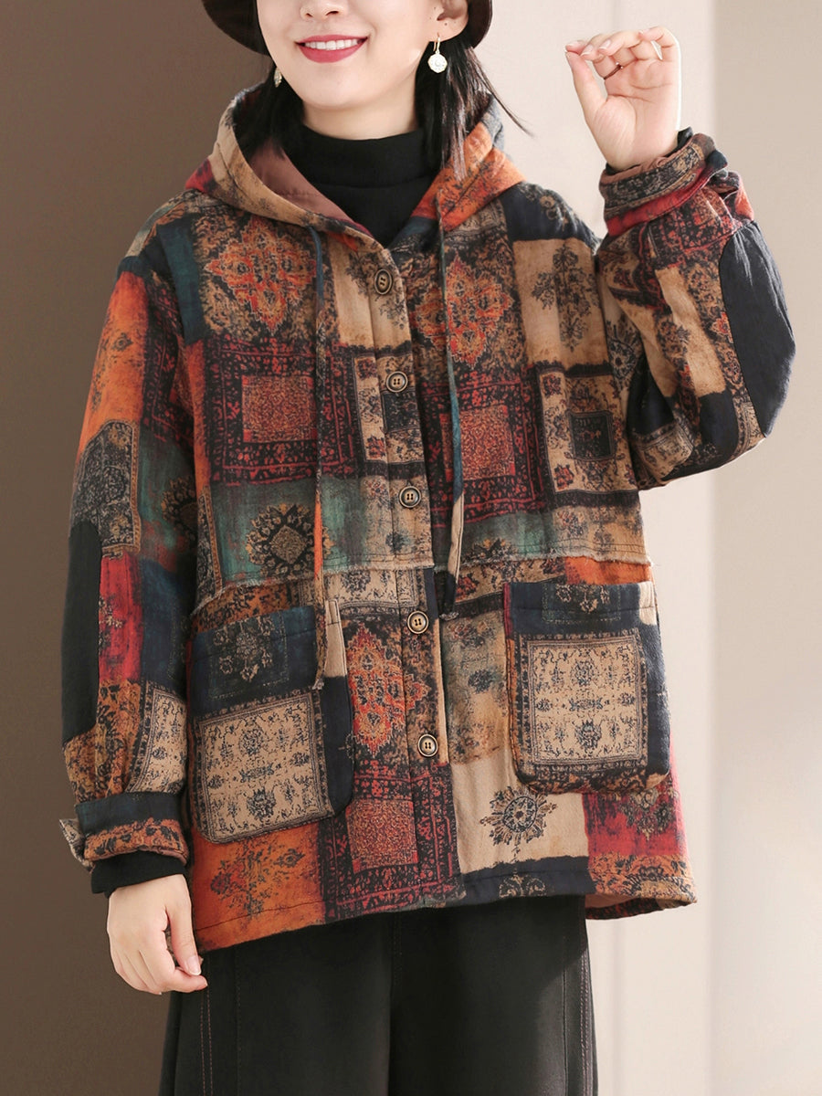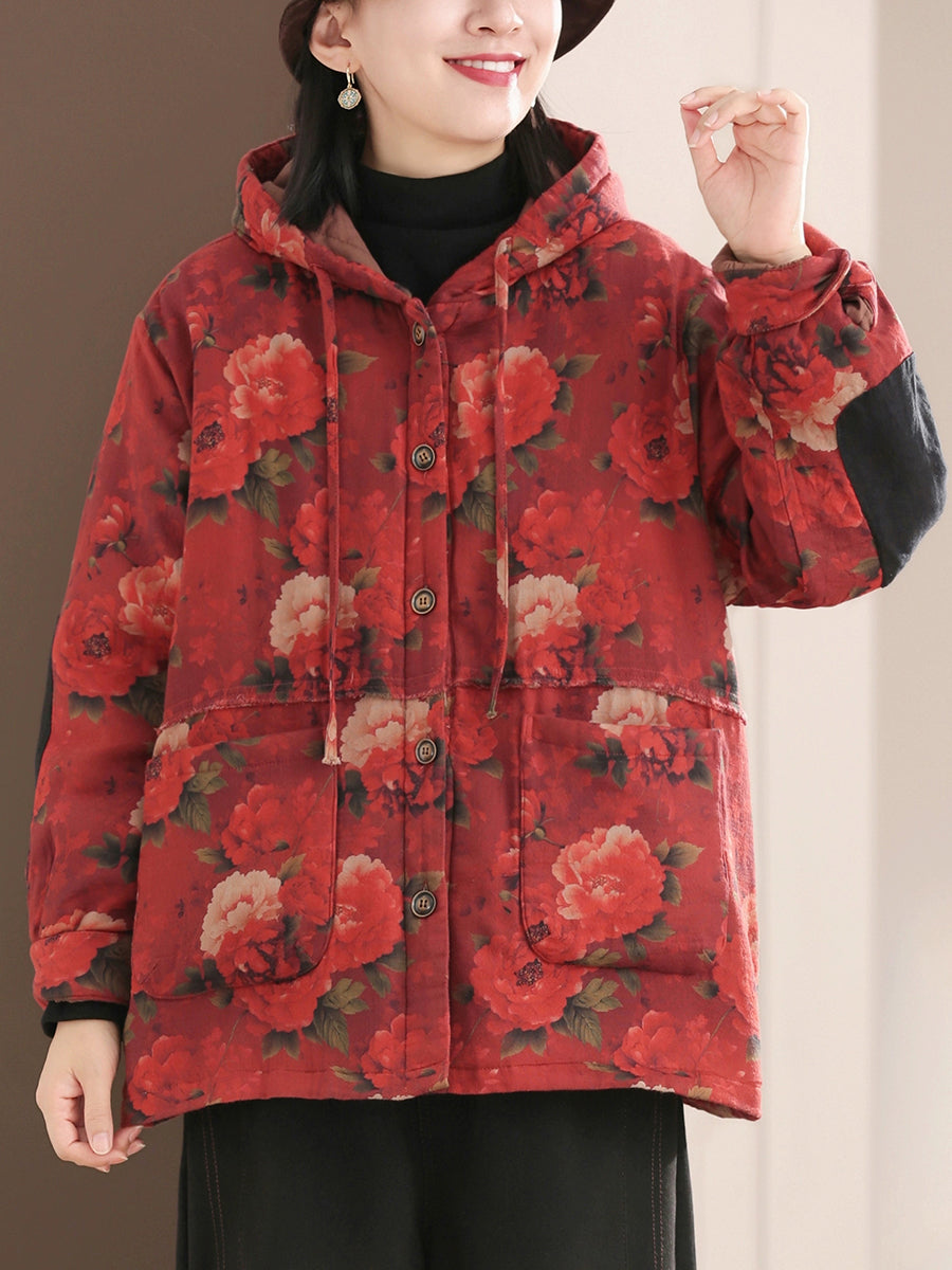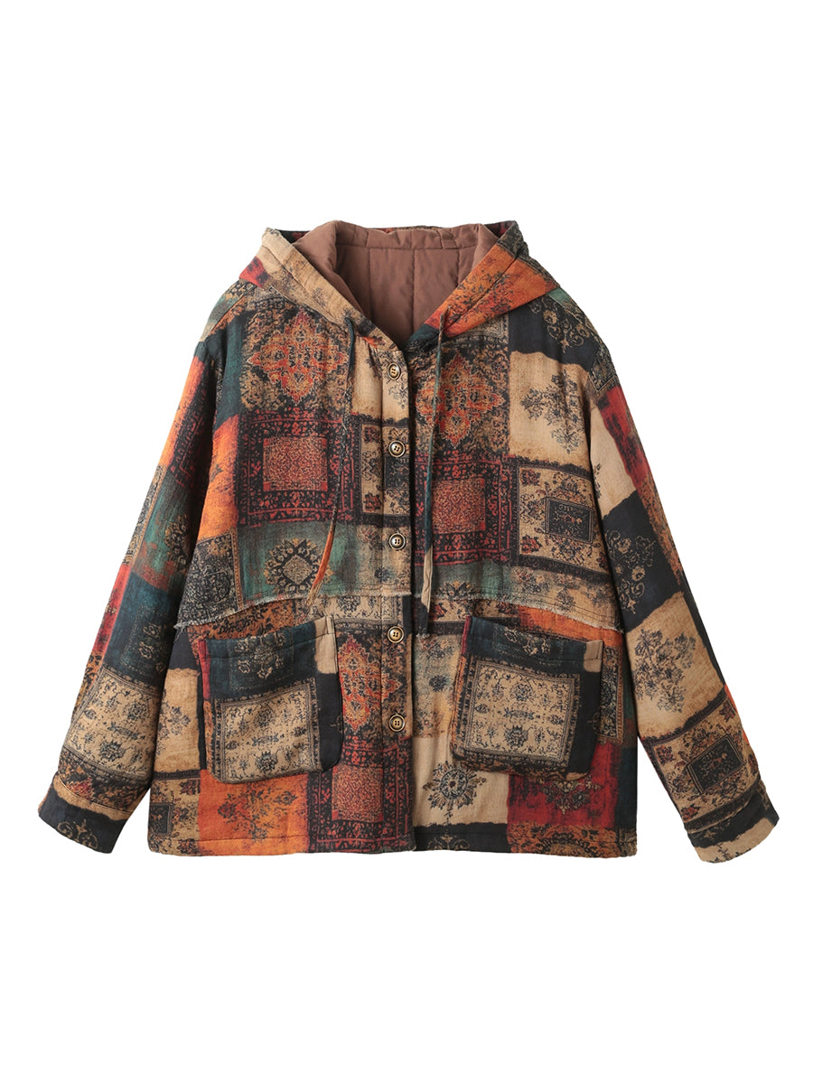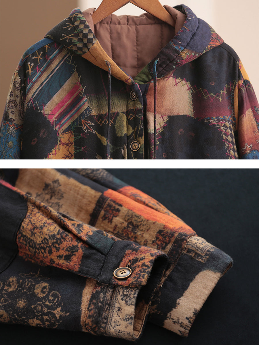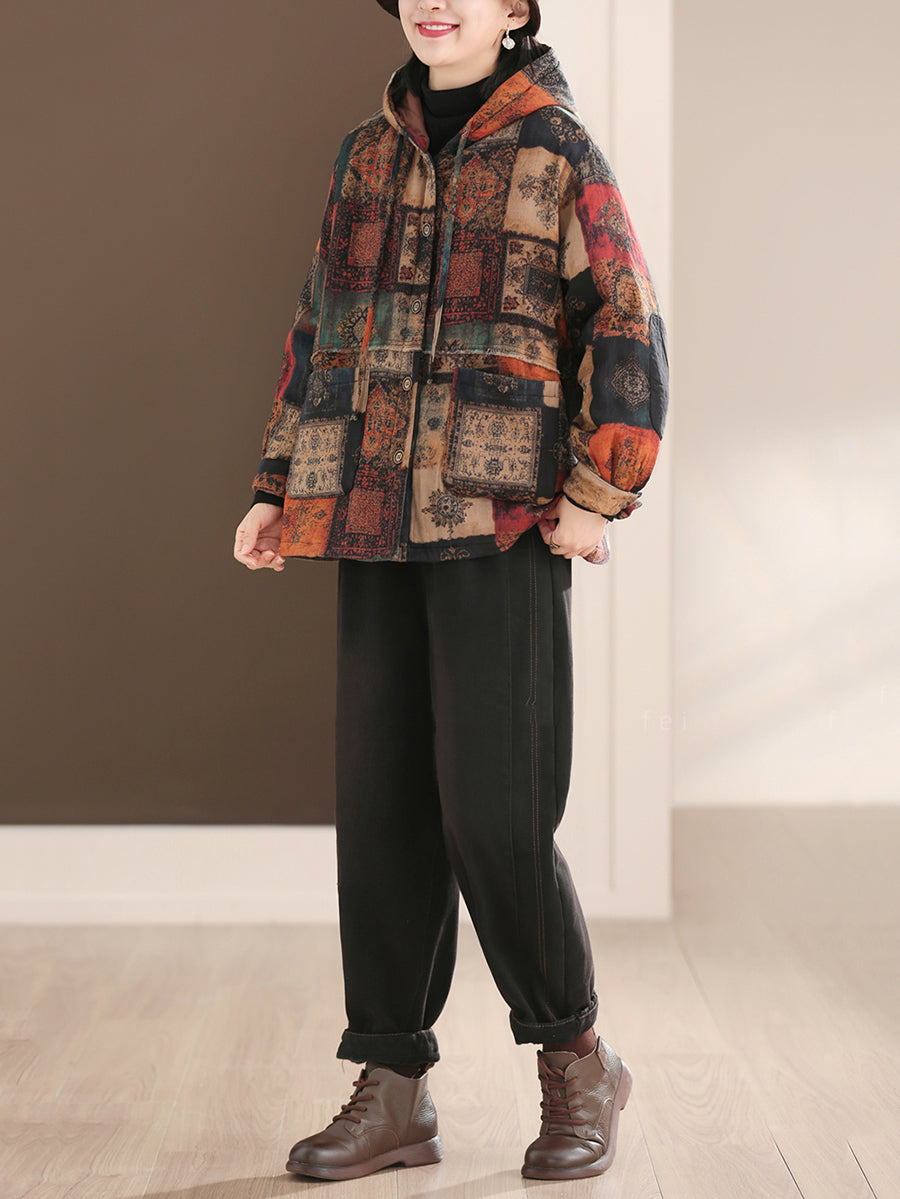 Crafted from premium cotton, this winter essential combines timeless retro aesthetics with contemporary comfort. The distinctive floral pattern adds visual interest, while the full-length sleeves and classic hooded collar provide comprehensive warmth during colder months. The regular sleeve cut ensures unrestricted movement, making it equally suitable for autumn transitions and winter wear. A sophisticated choice for those seeking vintage-inspired outerwear with functional design.