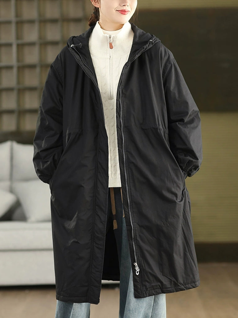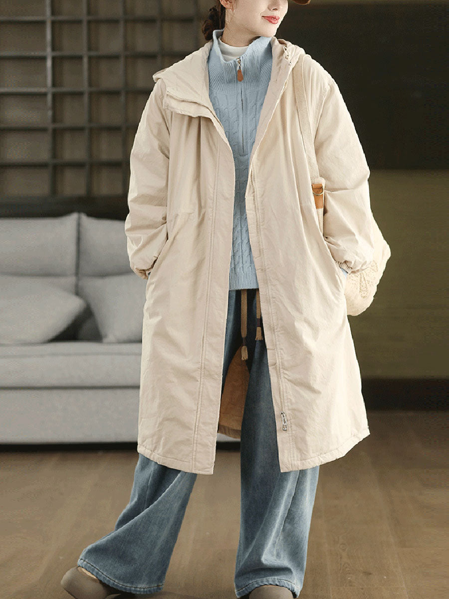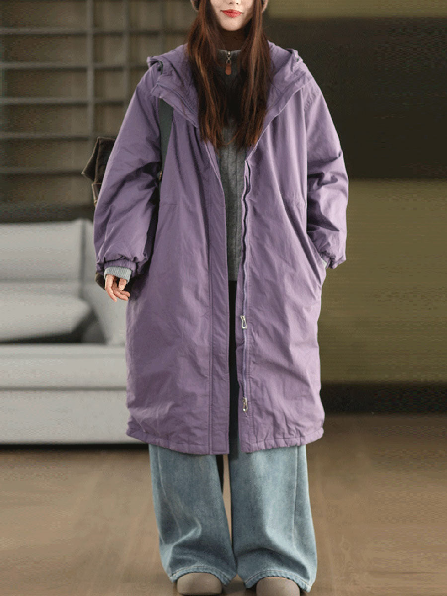 Stay warm through the colder months in this versatile padded hooded coat. Crafted with a cotton exterior and cotton lining for comfort and durability, this piece features a timeless solid color design that pairs effortlessly with any wardrobe. The full-length sleeves and classic hood provide reliable coverage, while the retro-inspired silhouette adds understated sophistication. Ideal for both autumn and winter wear, this casual essential delivers both style and functionality.