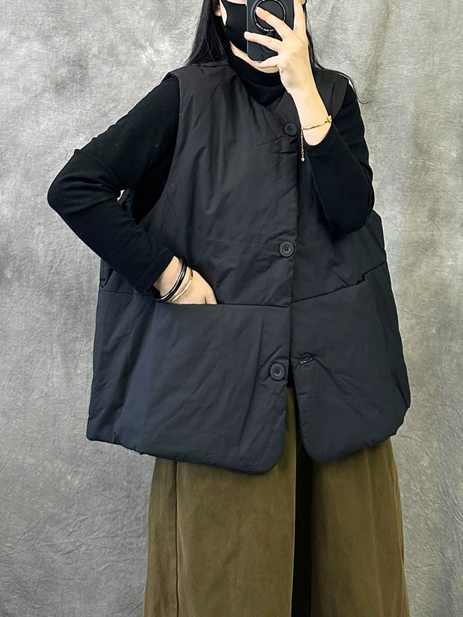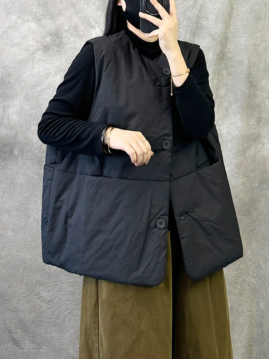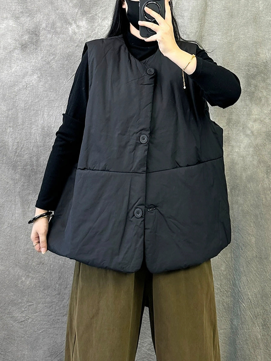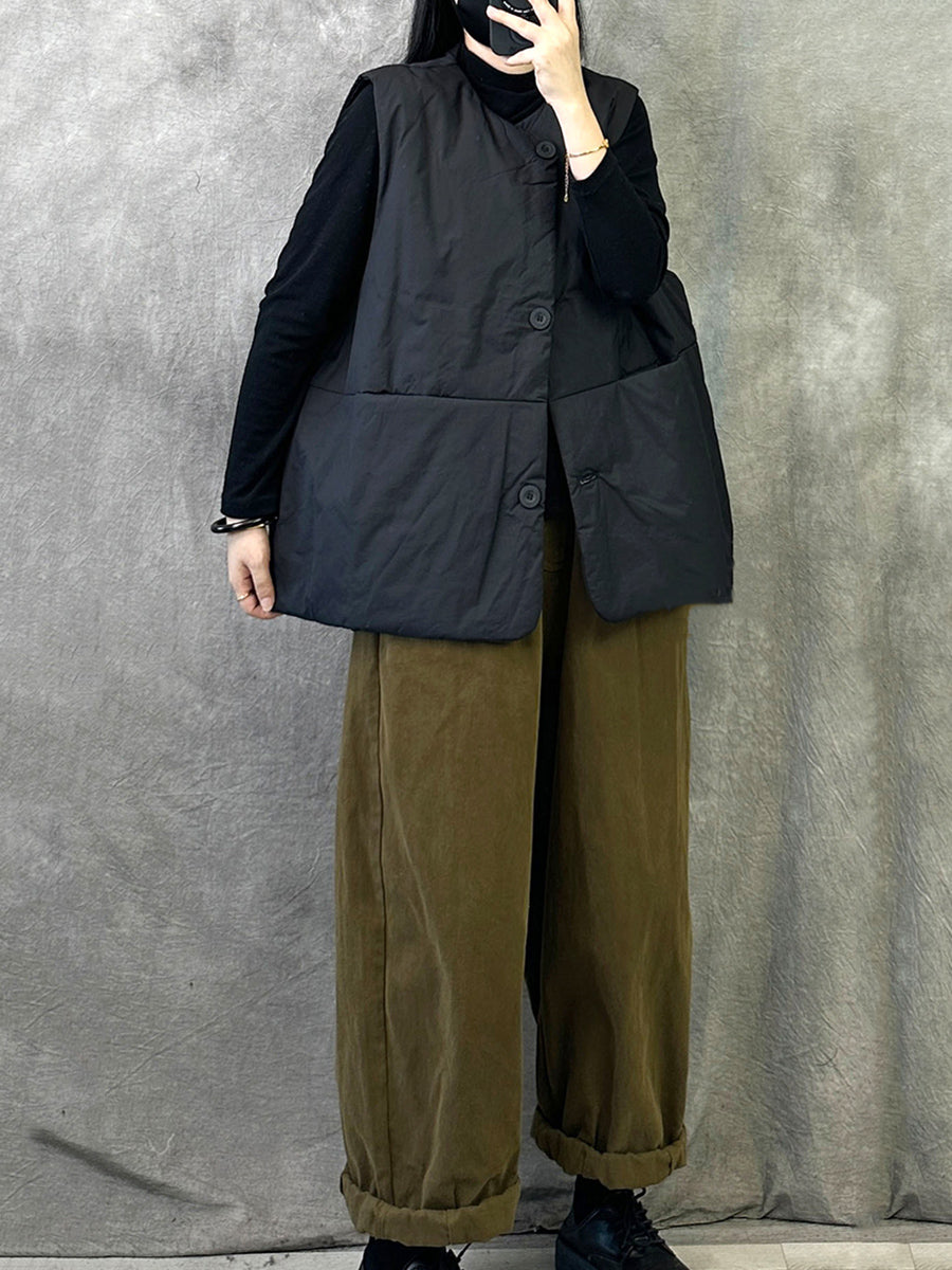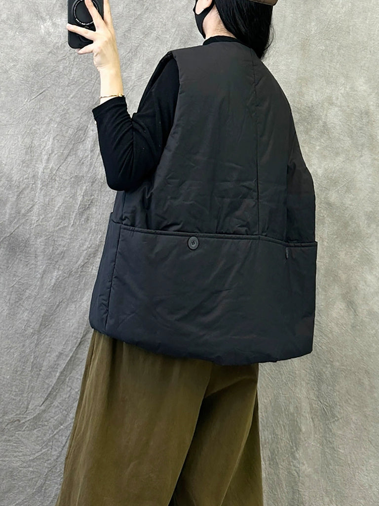 Crafted from quality cotton, this versatile padded vest delivers essential warmth for transitional seasons. The minimalist solid-color design and relaxed O-neck silhouette make it an effortless layering piece that complements any casual wardrobe. Ideal for autumn and winter wear, it combines practical insulation with understated sophistication.