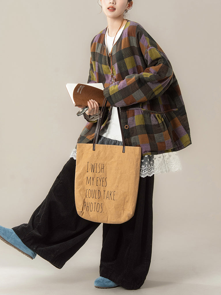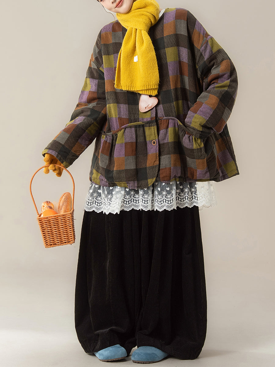 Women Vintage Winter Plaid O-Neck Padded Coat