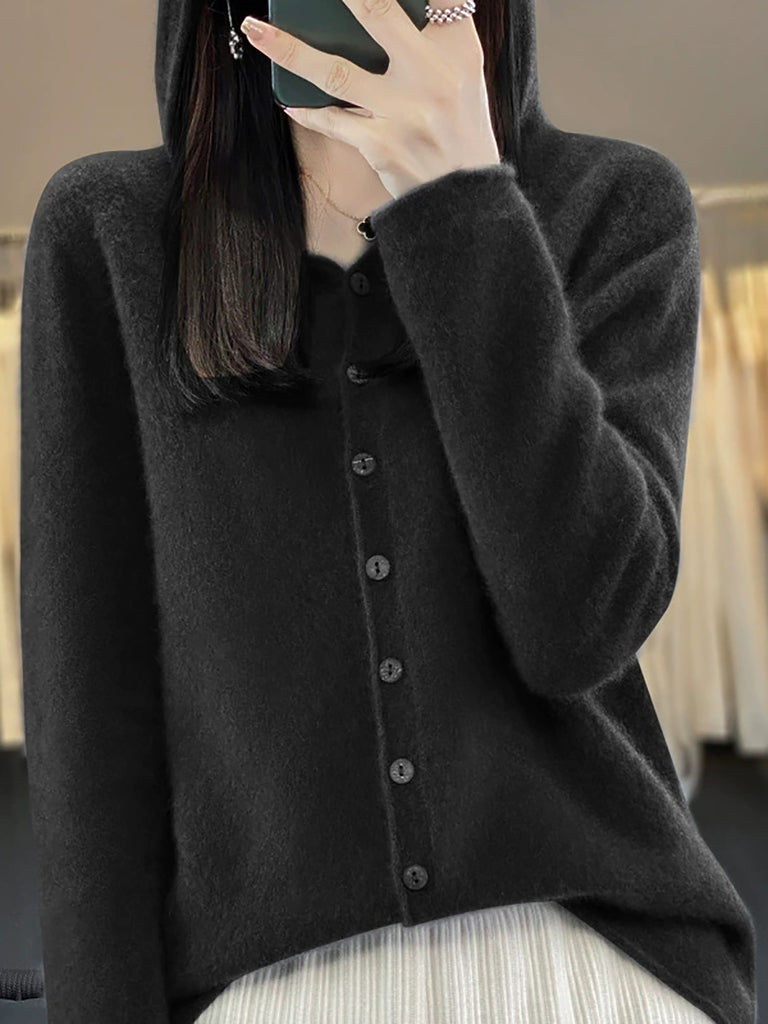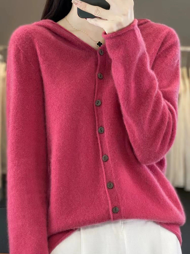 Women Autumn Casual Pure Color Knitted Hooded Sweater