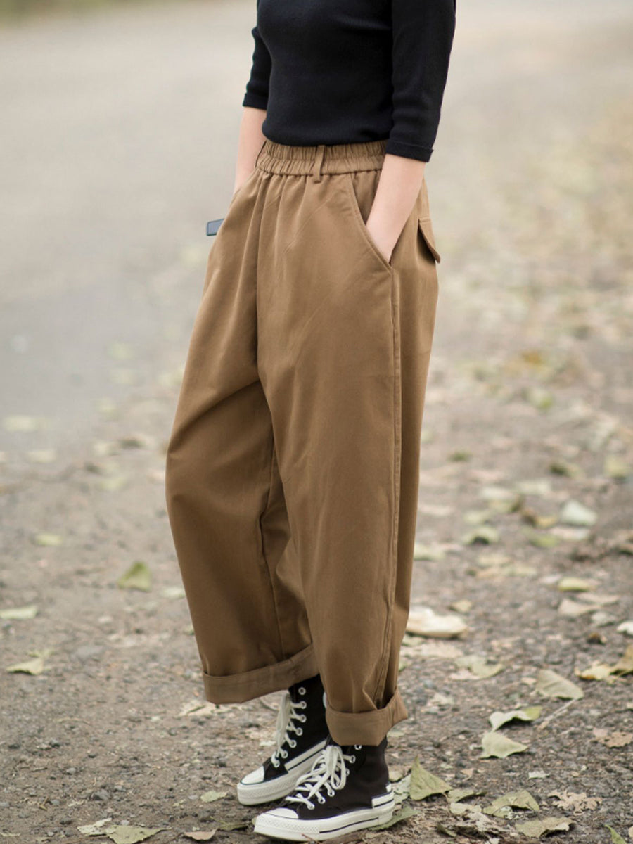 Women Winter Pure Color 100%Cotton Fleece-lined Harem Pants