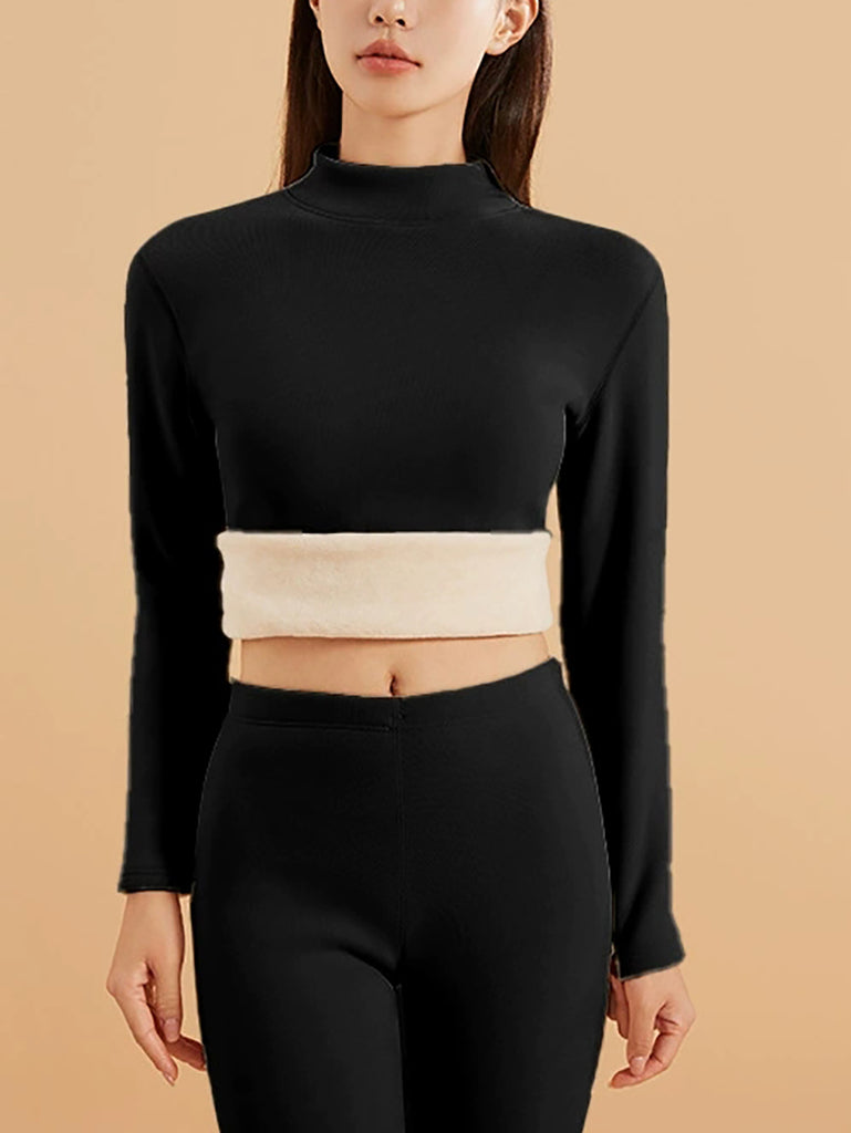 Women Winter Pure Color Half-Turtleneck Base Blouse