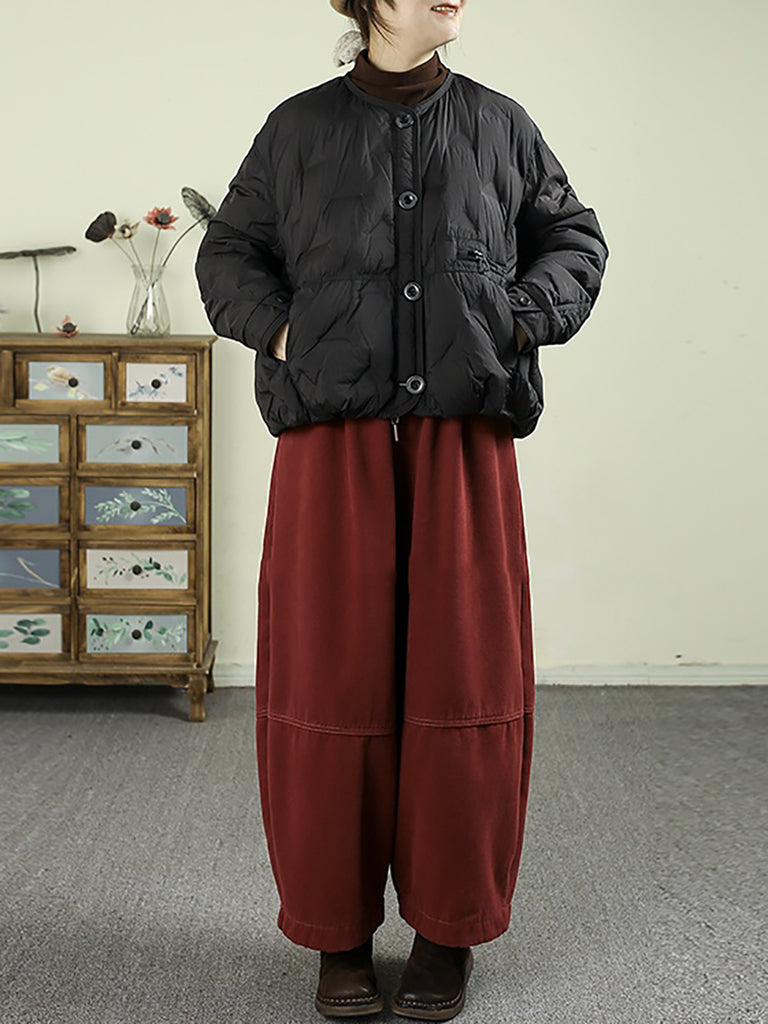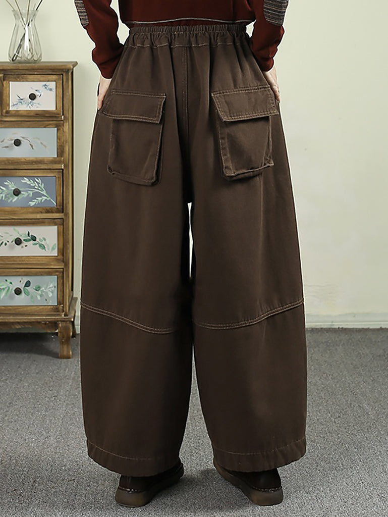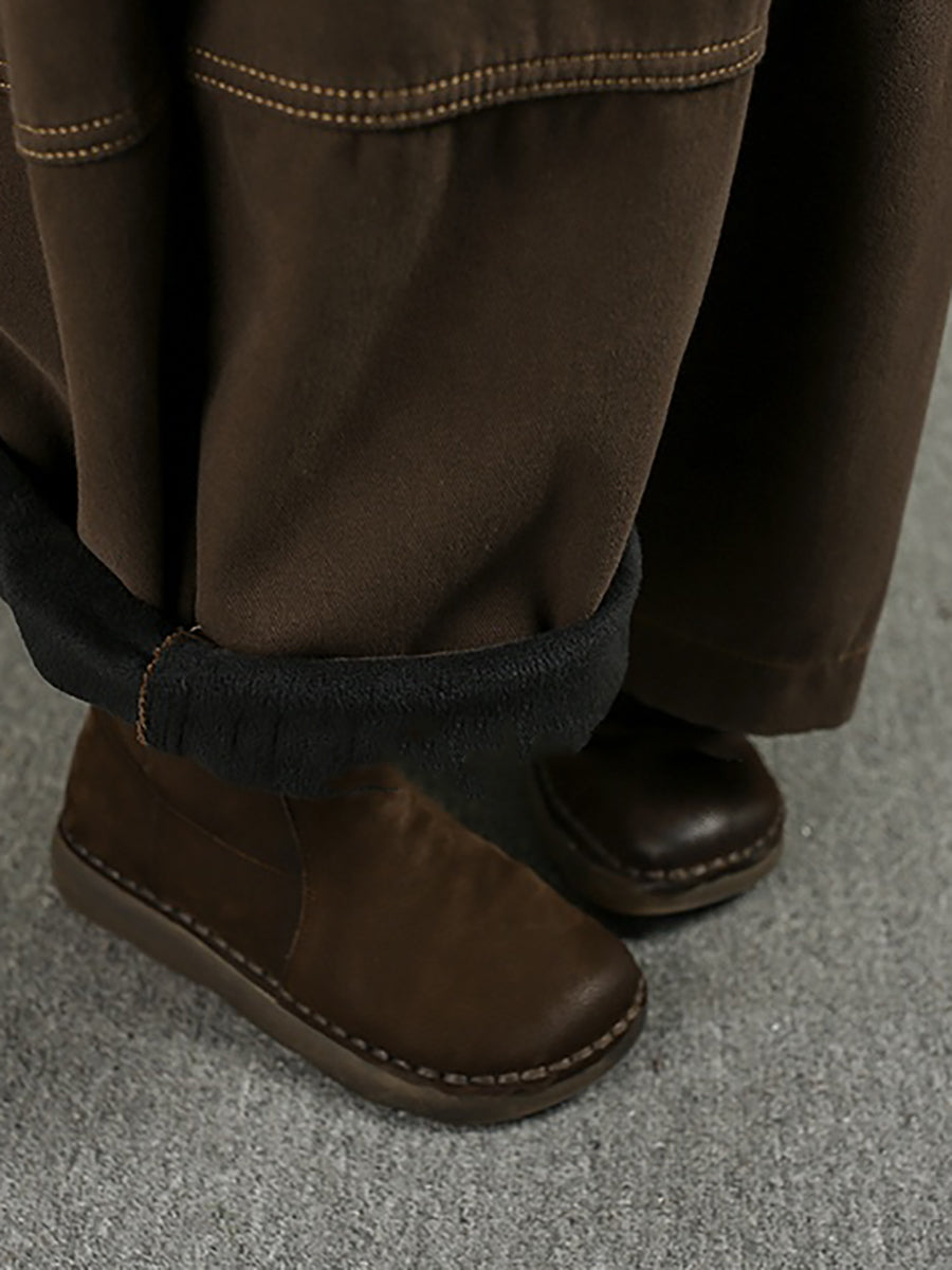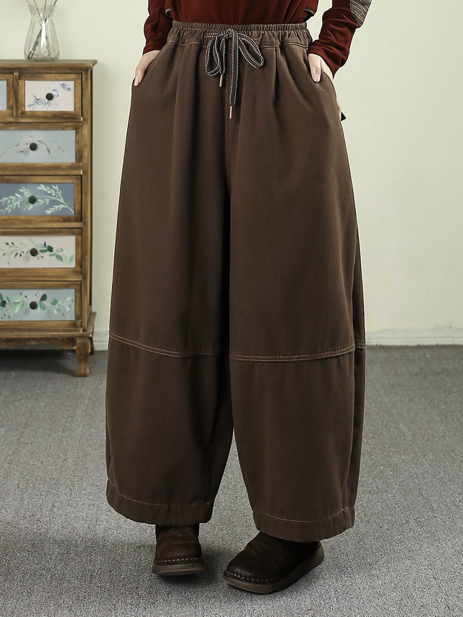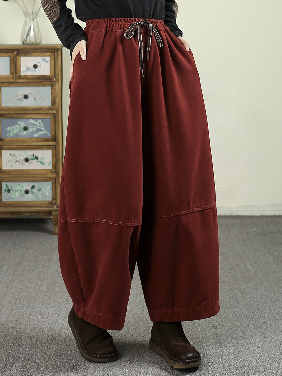 Women Winter Retro Pure Color Fleece-lined Harem Pants