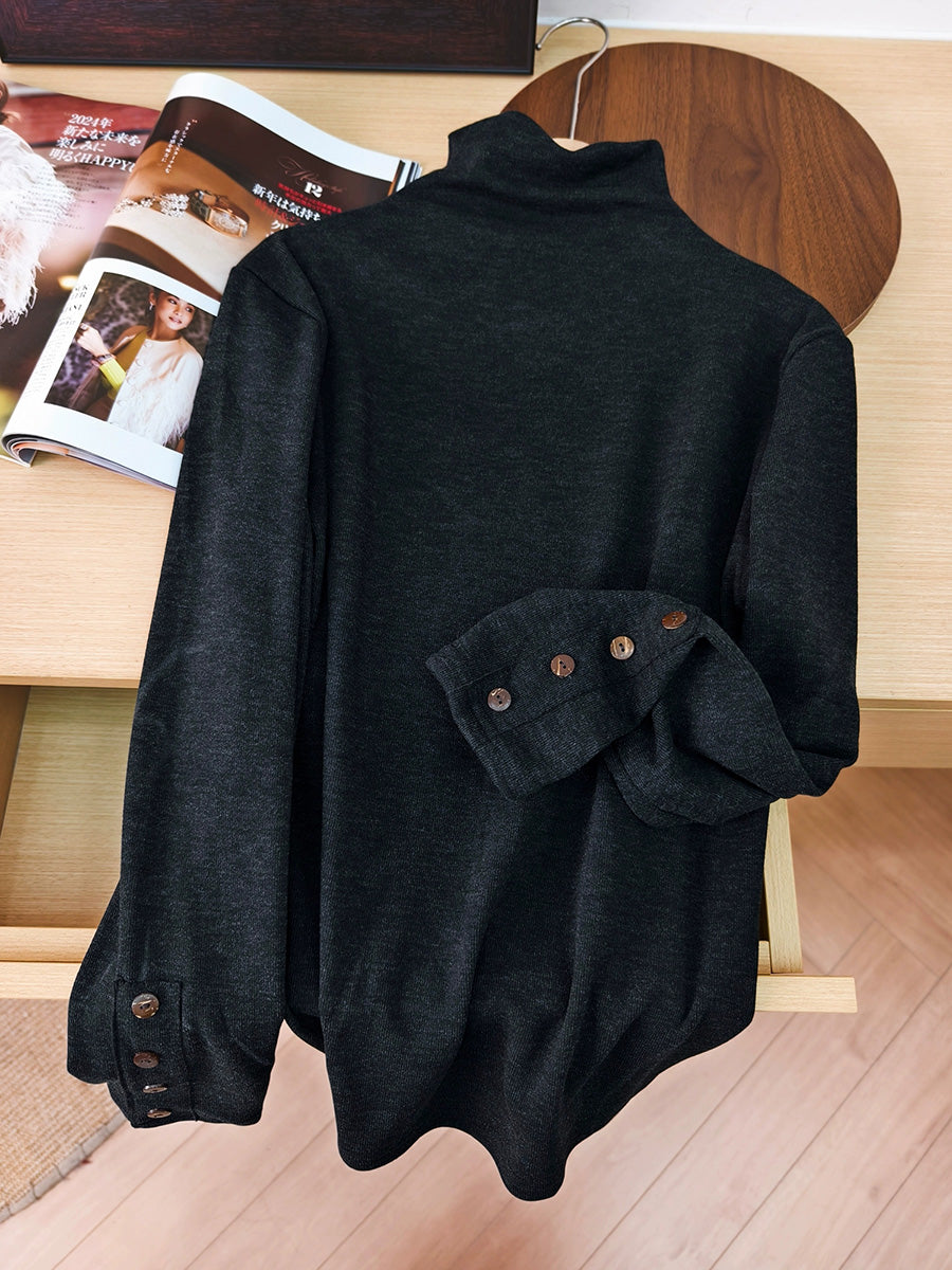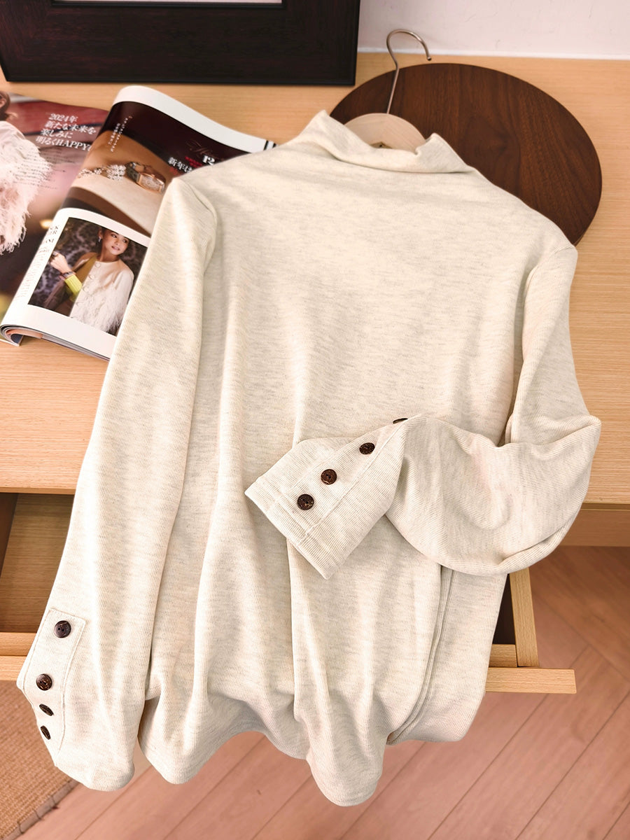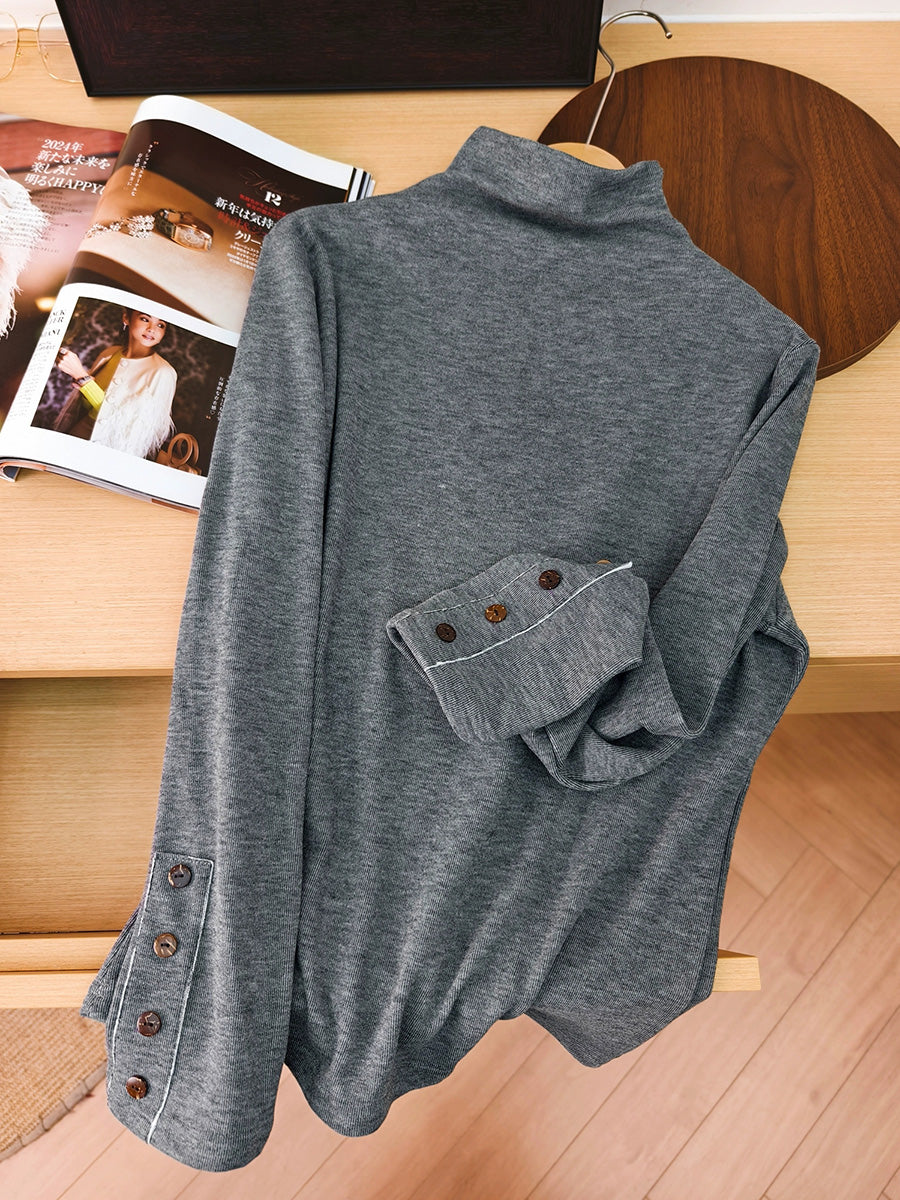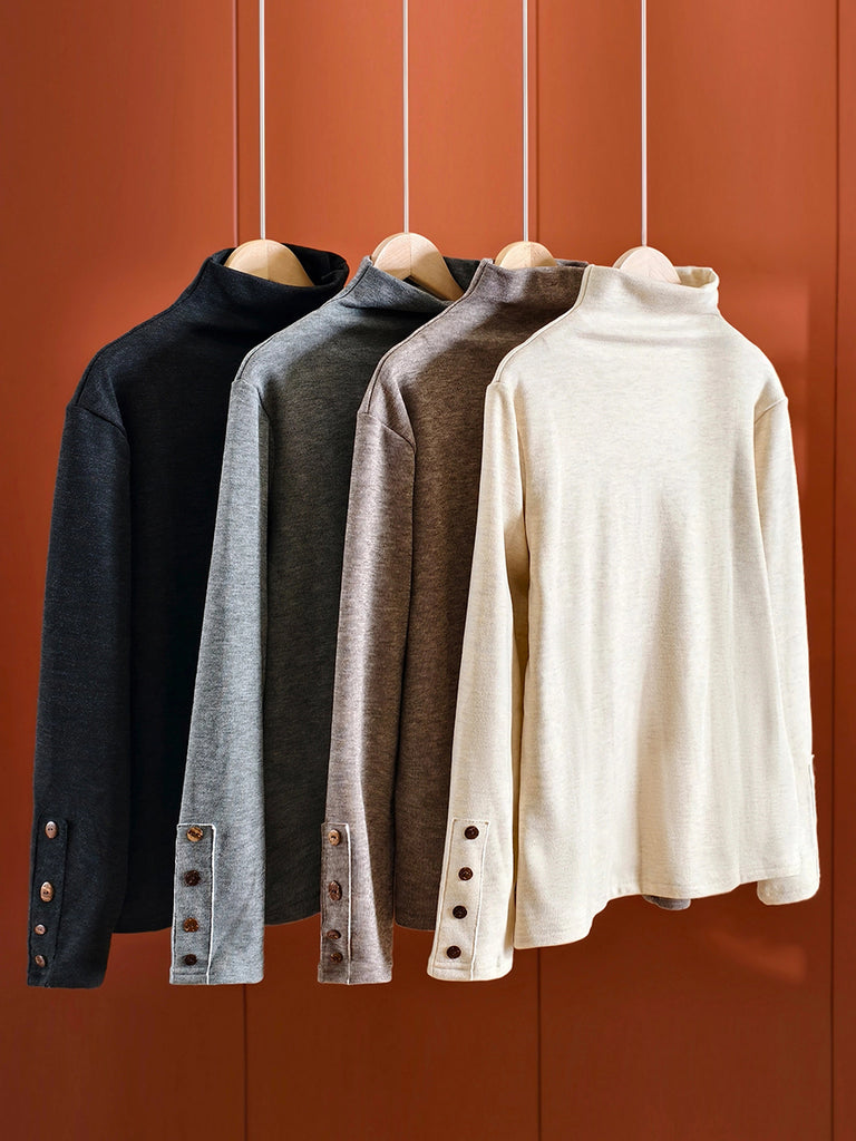 Women Casual Autumn Pure Color Cotton Turtleneck Blouse