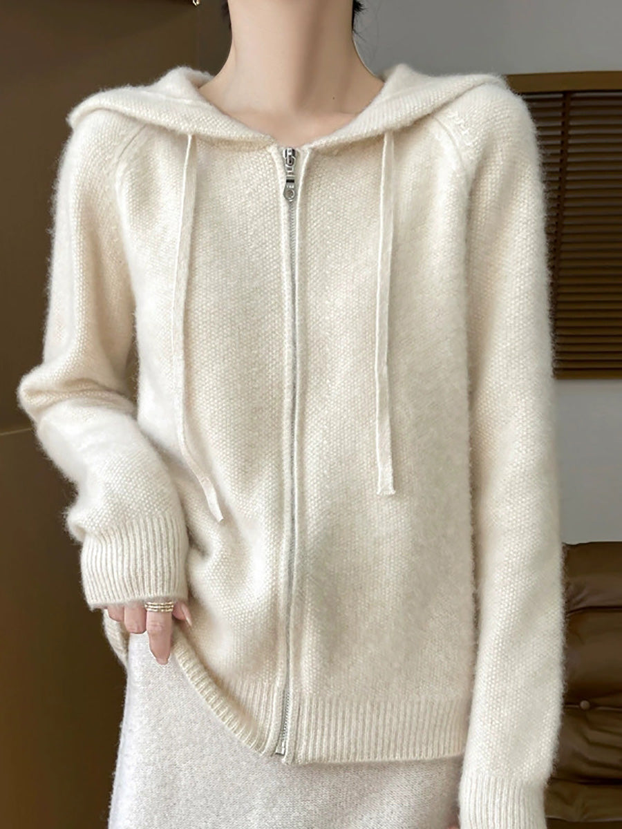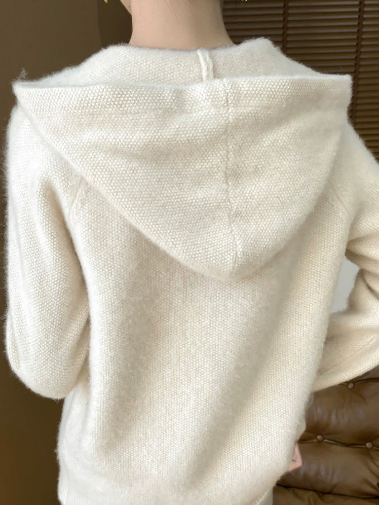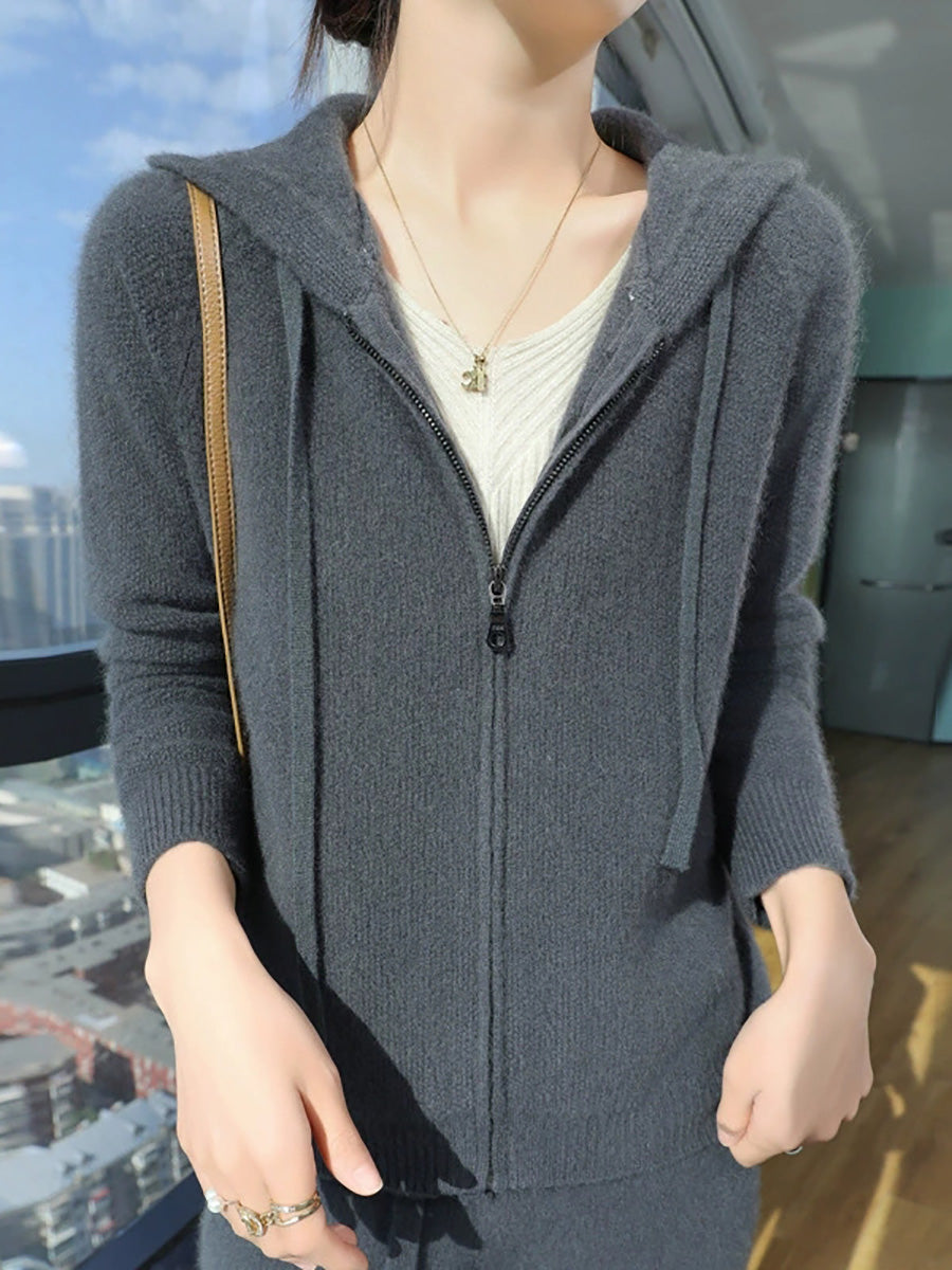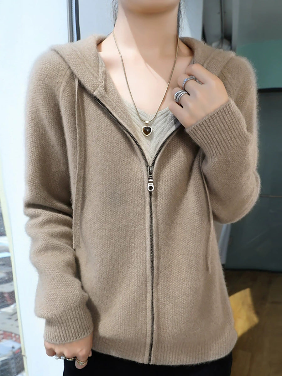Women Winter Casual Pure Color Hooded Sweater Coat