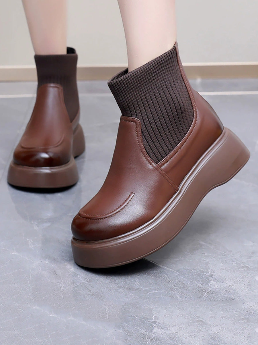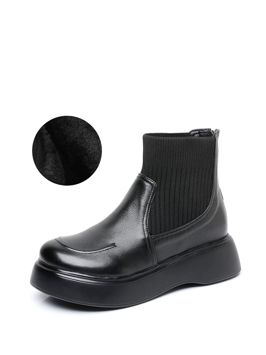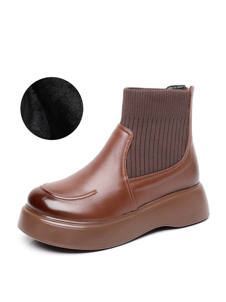 Women Winter Genuine Leather Spliced Platform Boots