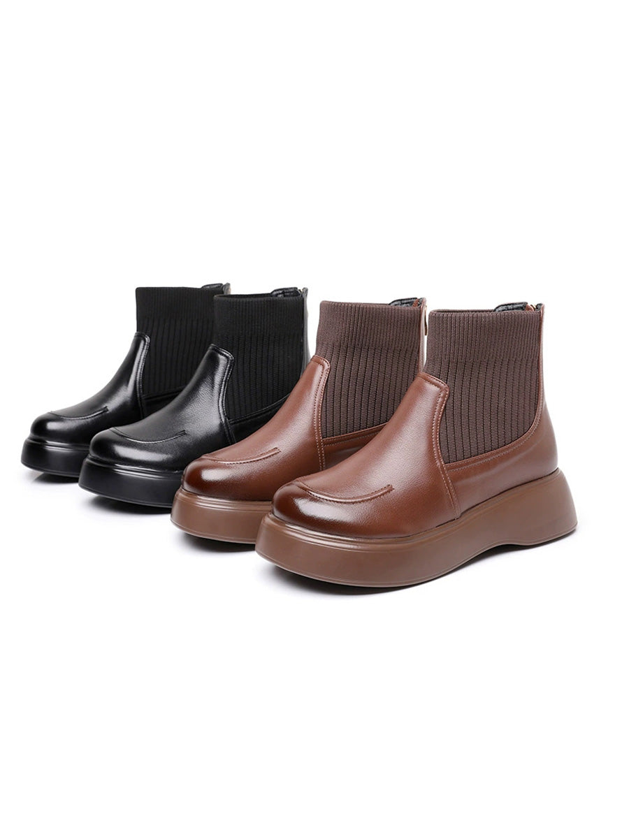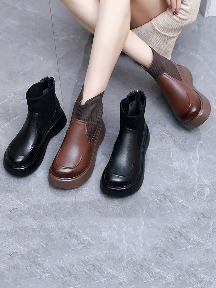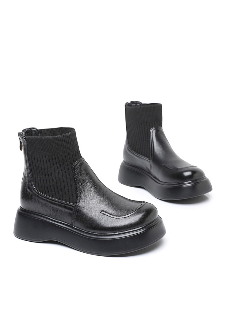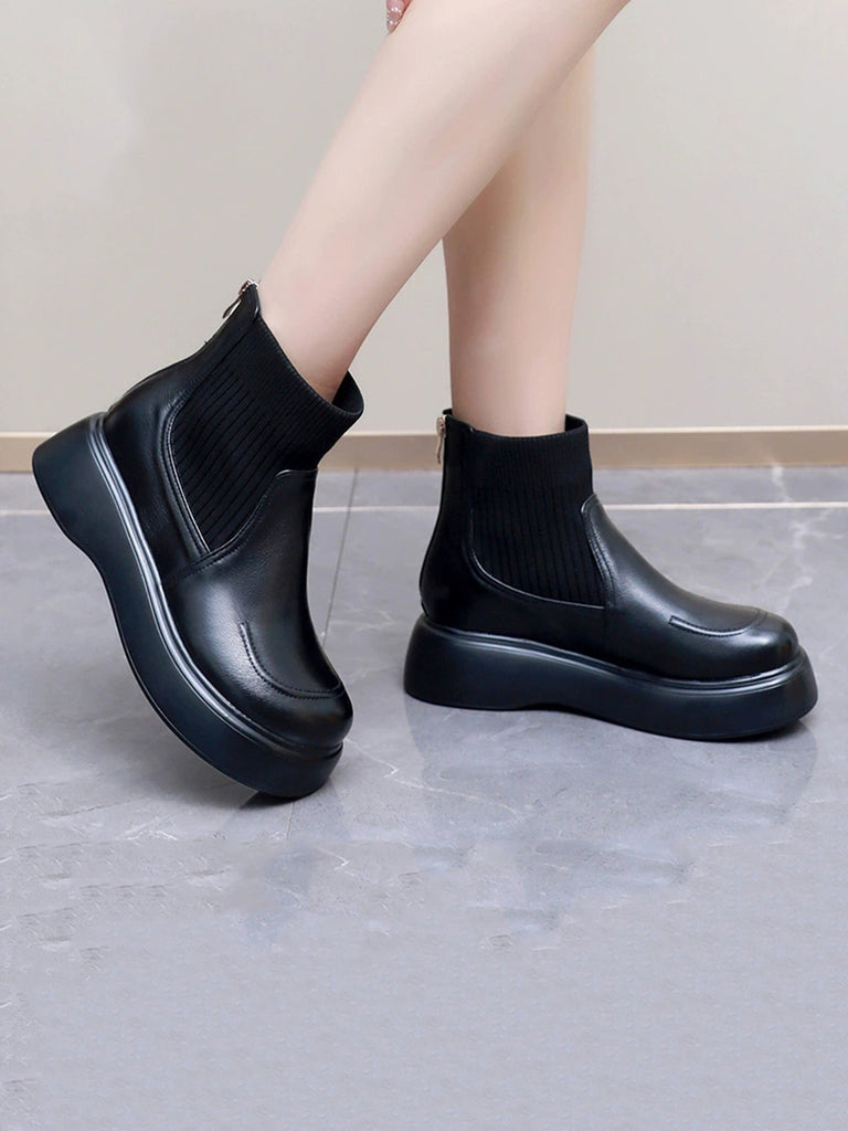 Women Winter Genuine Leather Spliced Platform Boots