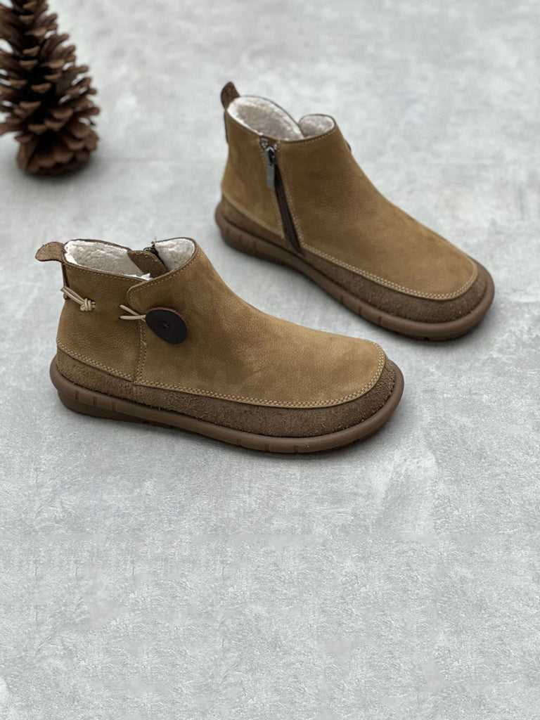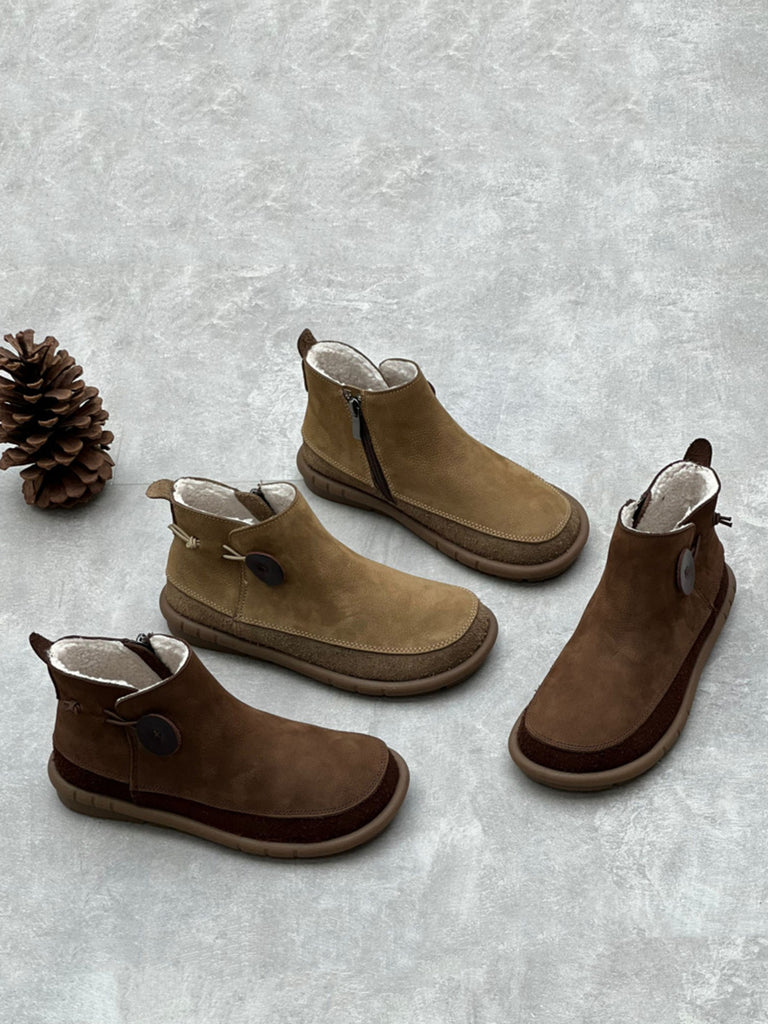 Women Winter Casual Genuine Leather Fleece-lined Warm Boots