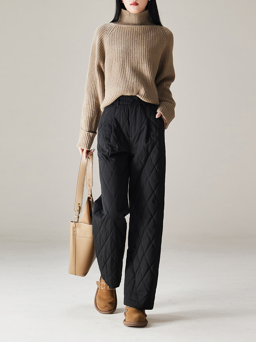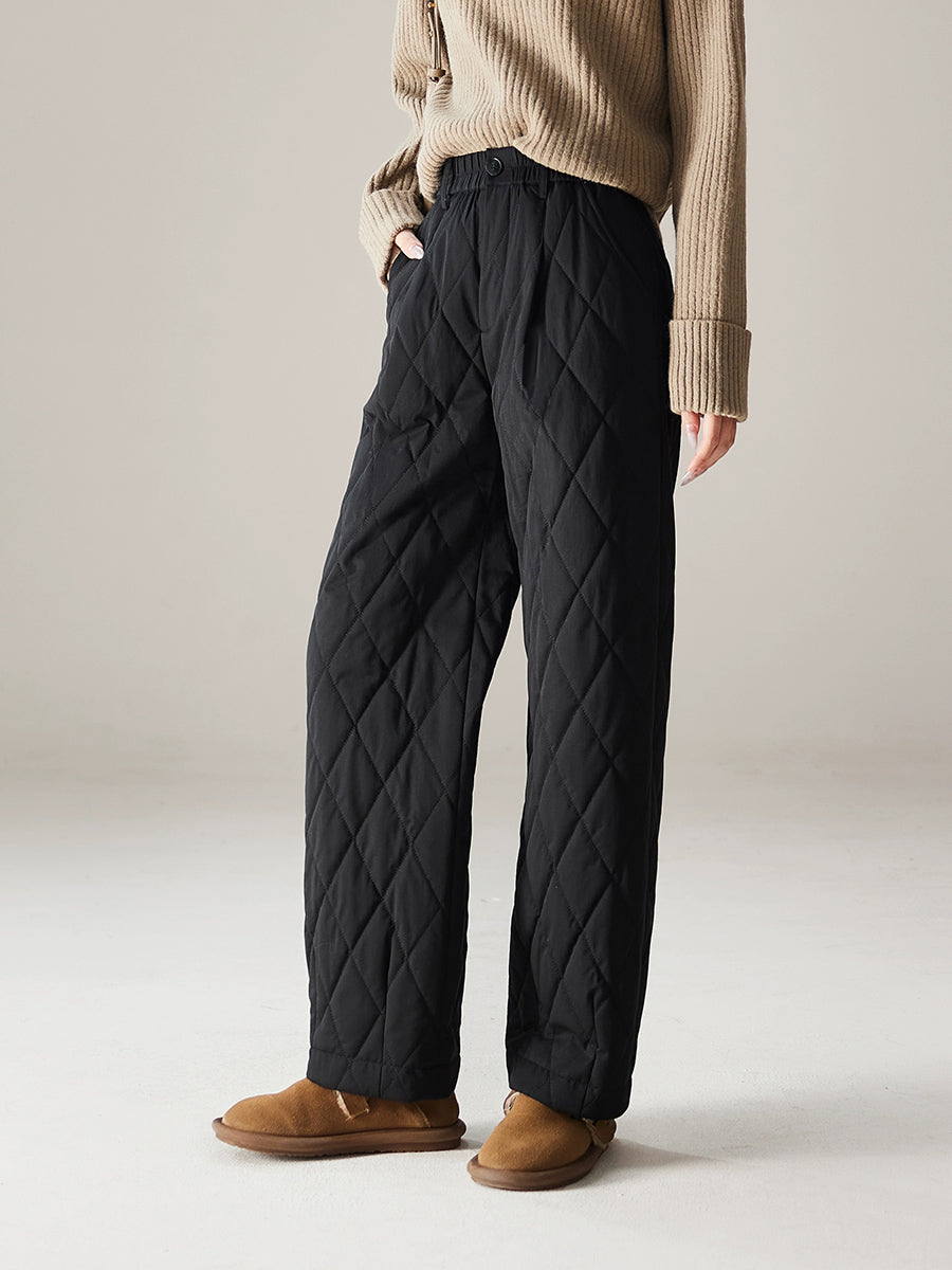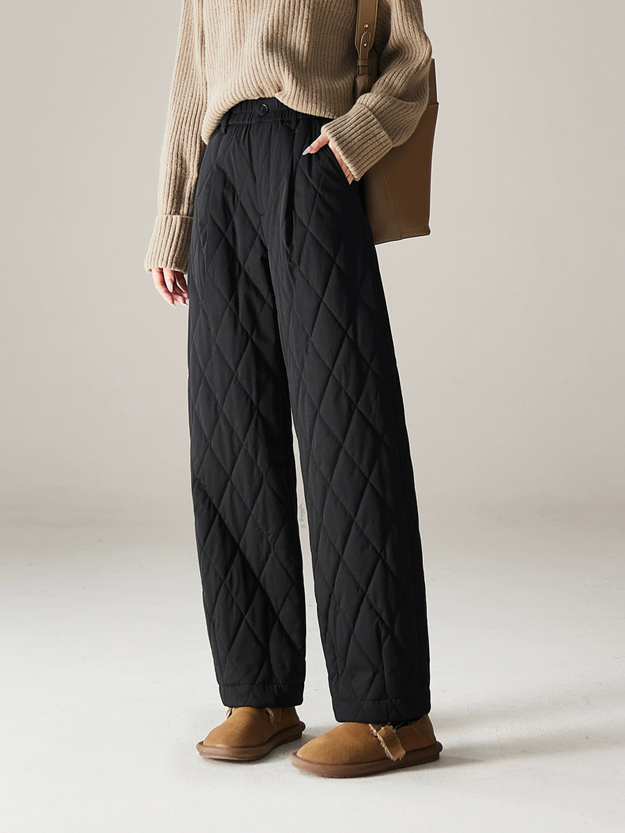 Women Winter Casual Pure Color Padded Straight Pants