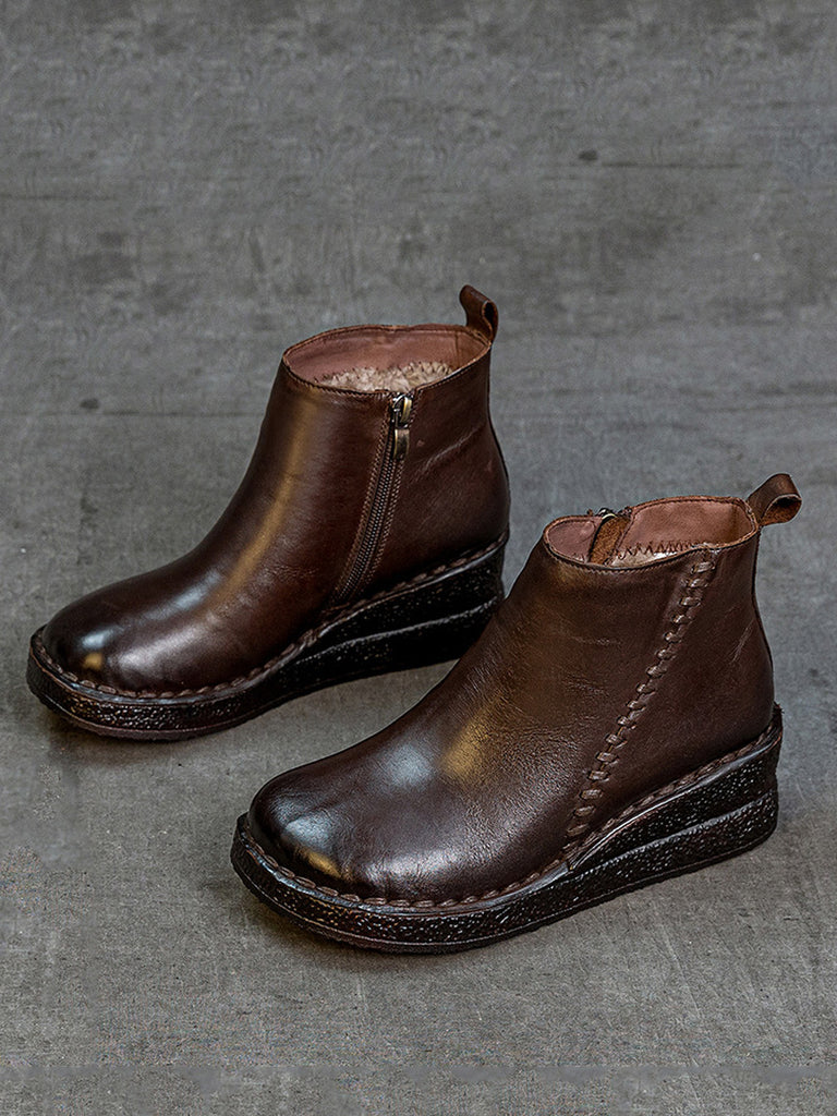Women Genuine Leather Platform Fleece-lined Ankle Boots