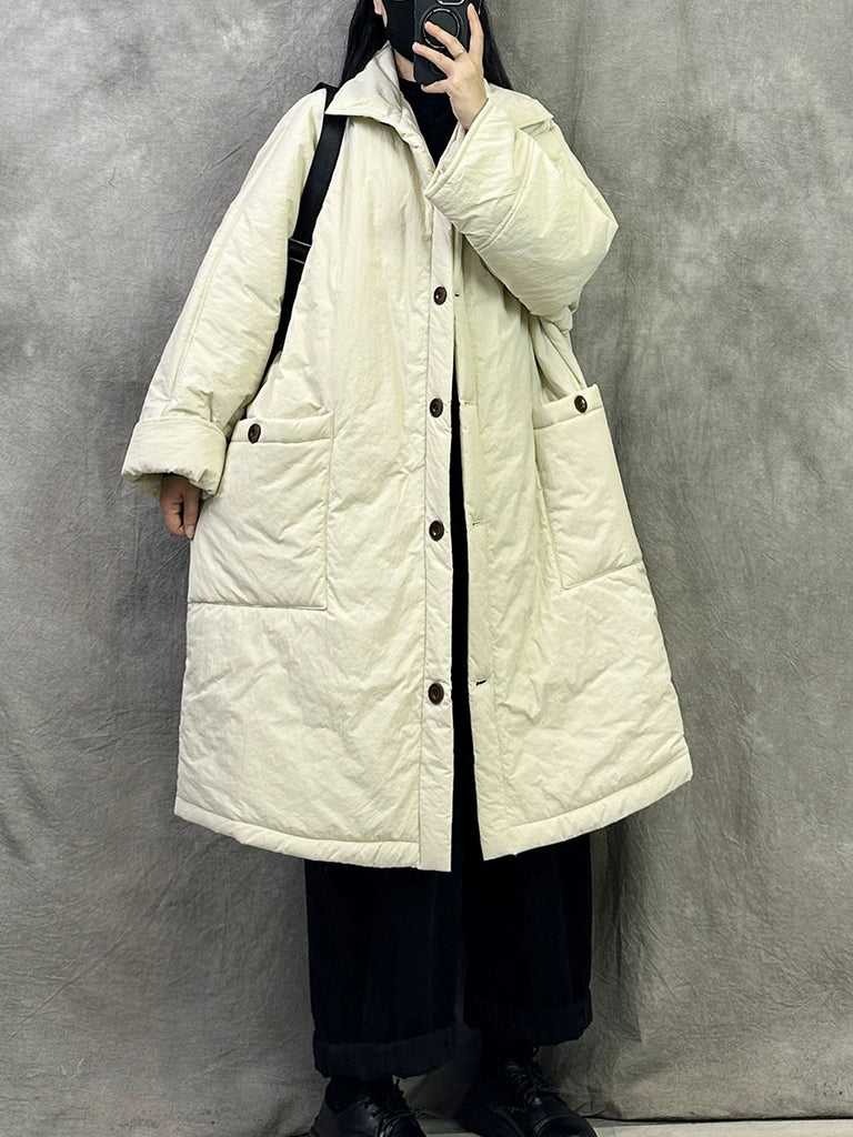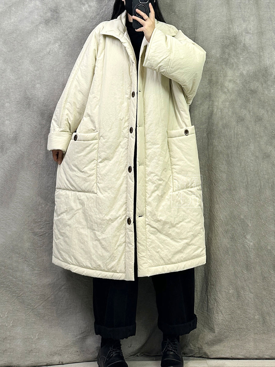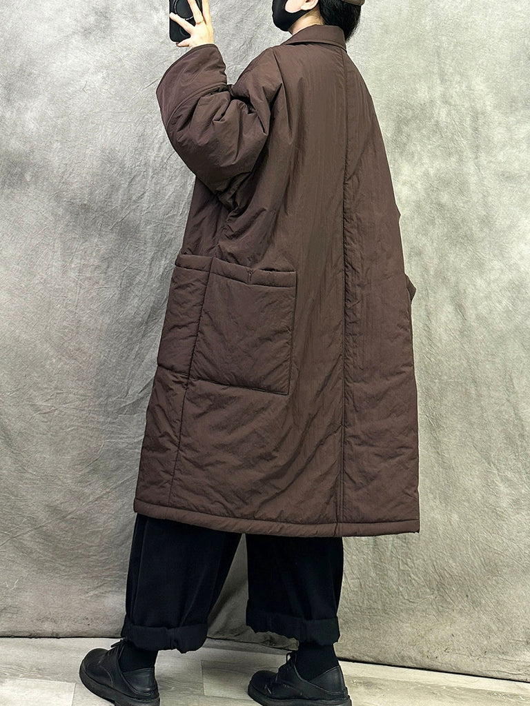 Women Winter Pure Color Padded Turn-down Collar Long Coat