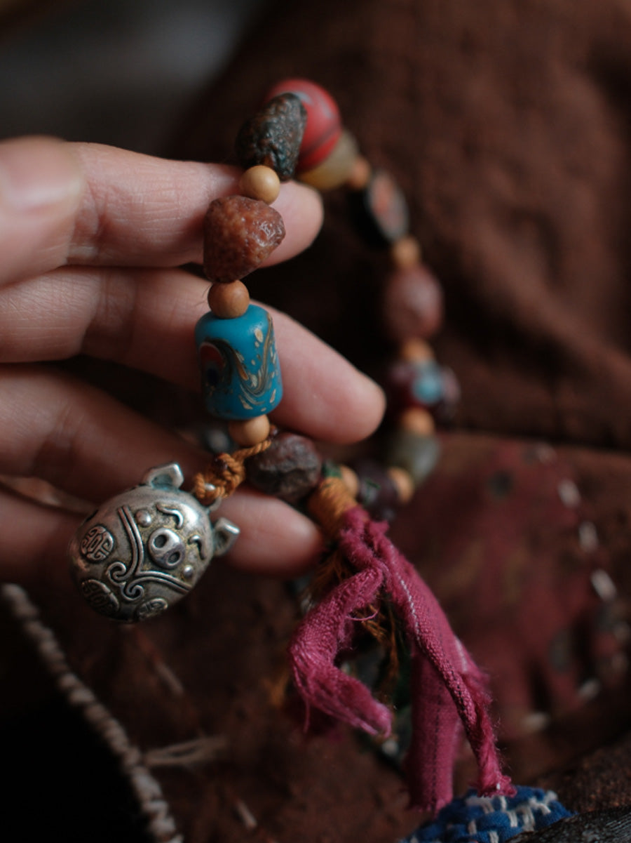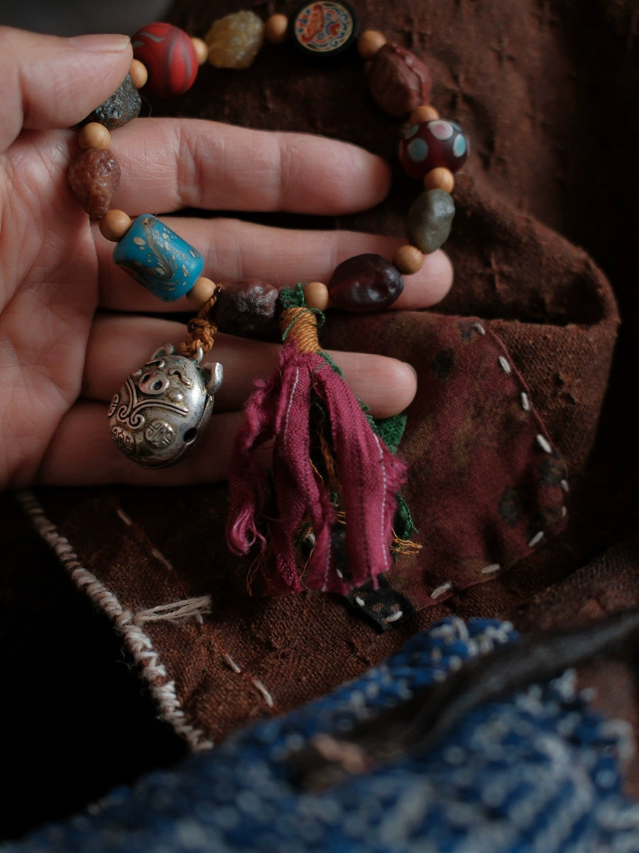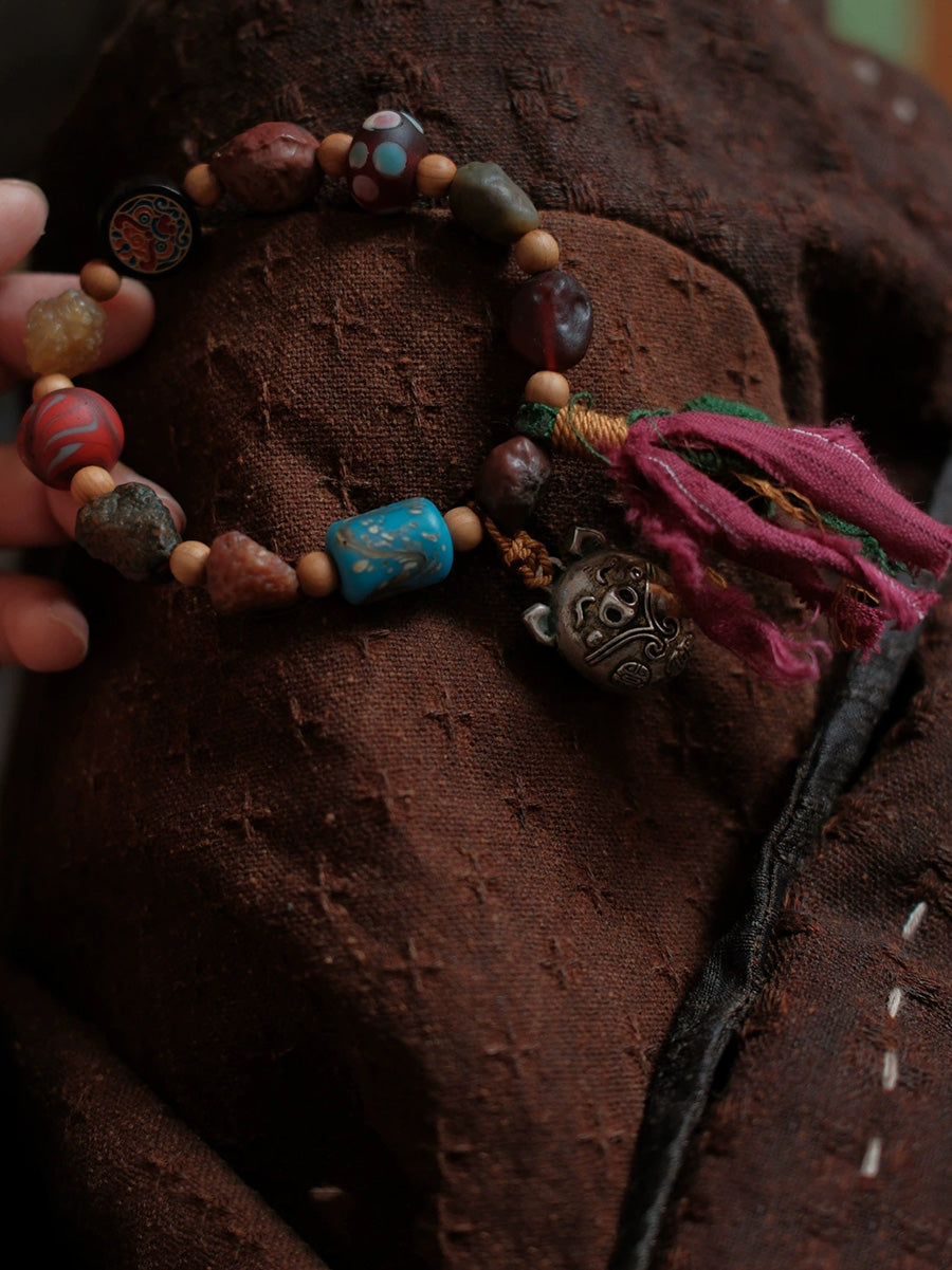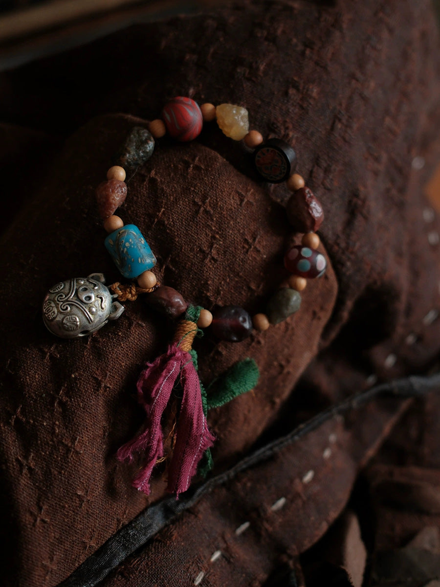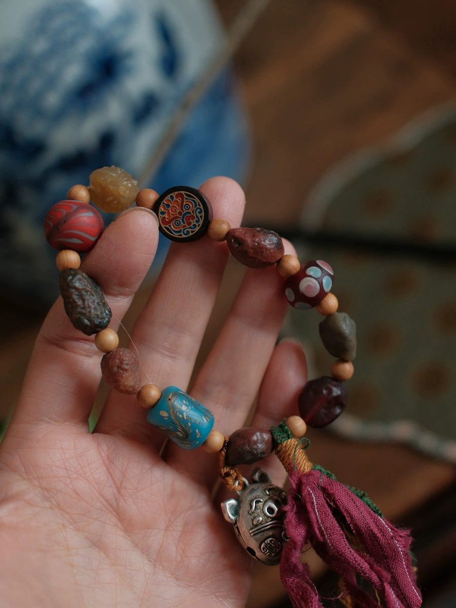 Women Ethnic Wooden Bead Handmade Tassel Bracelet