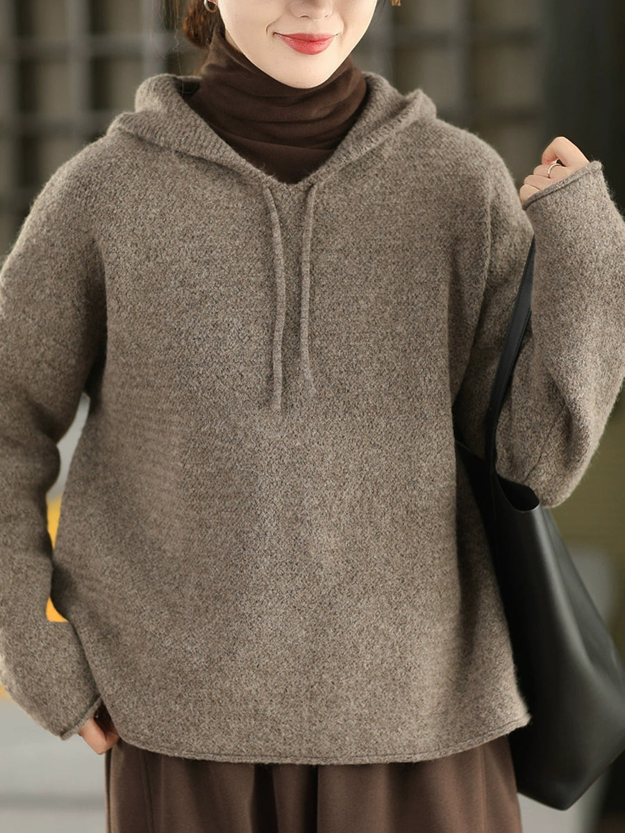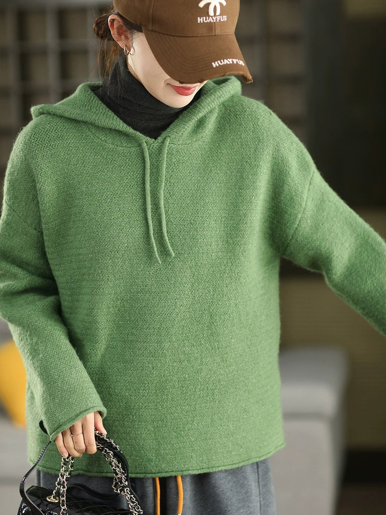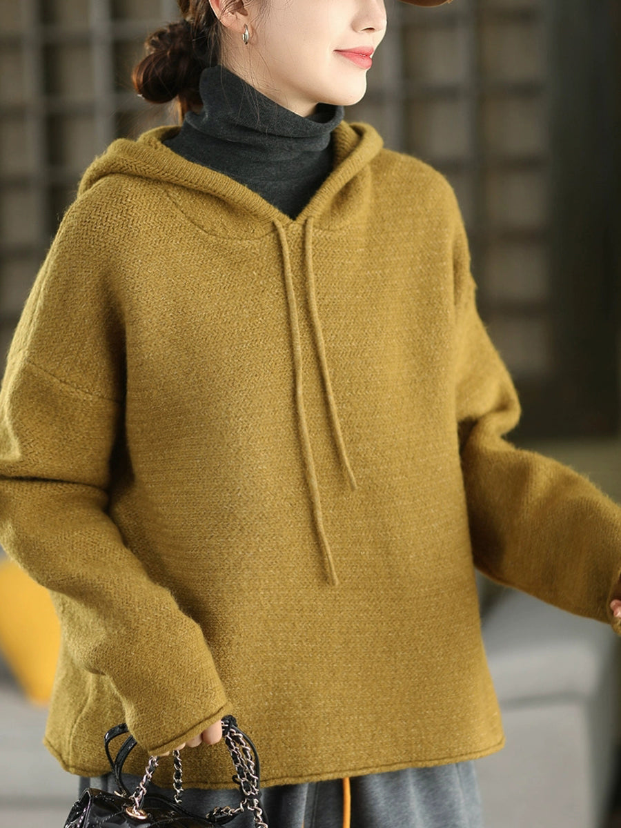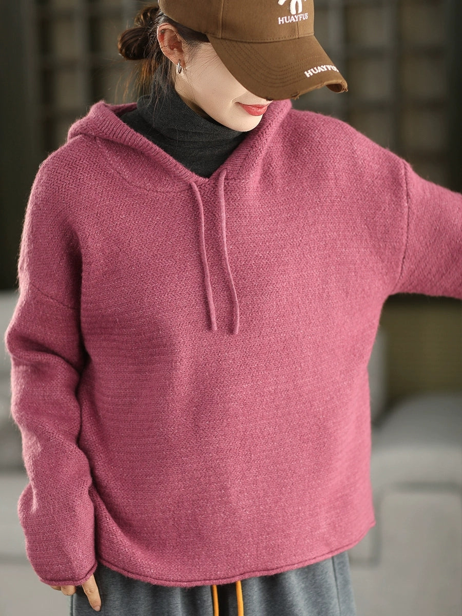 Women Autumn Artsy Pure Color Hooded Sweater