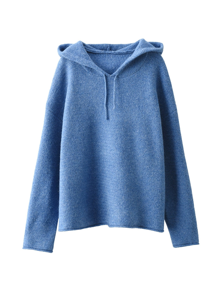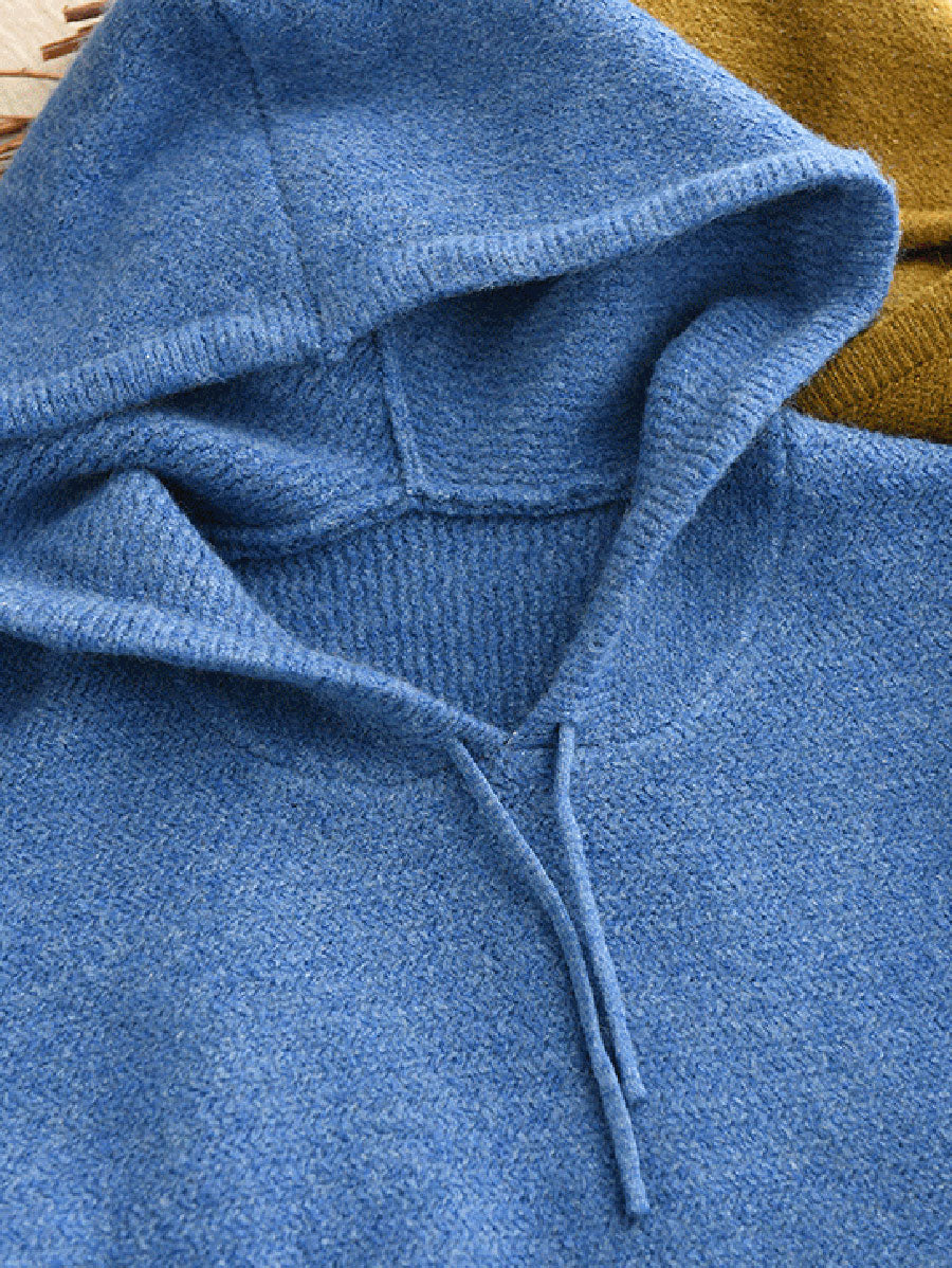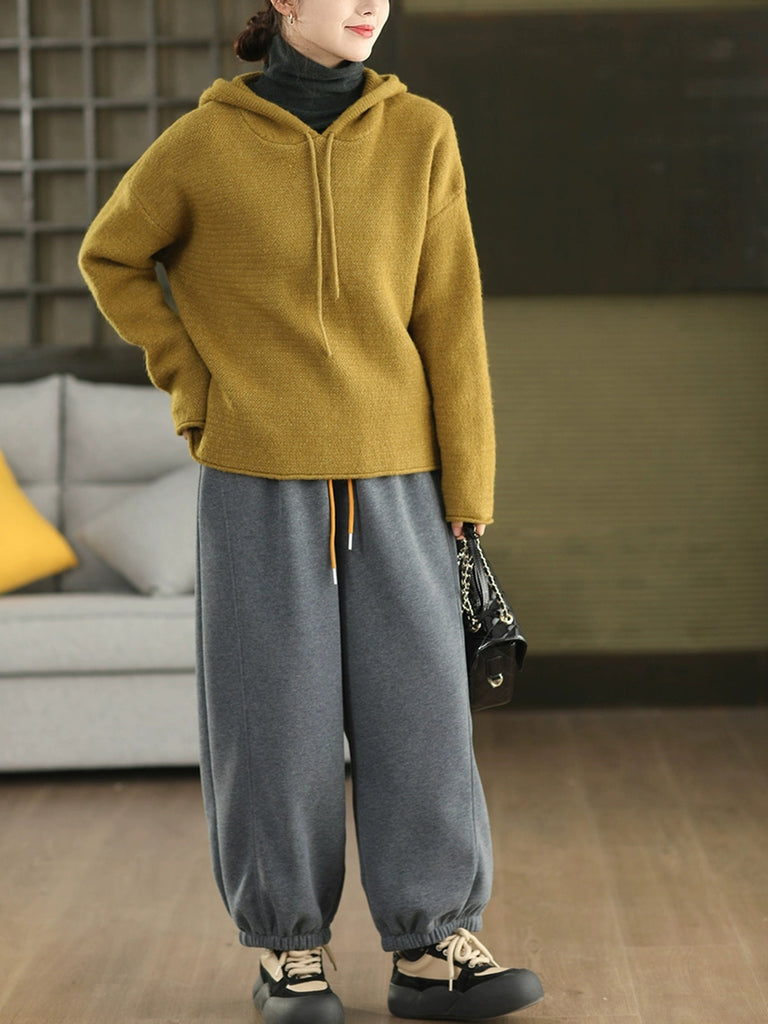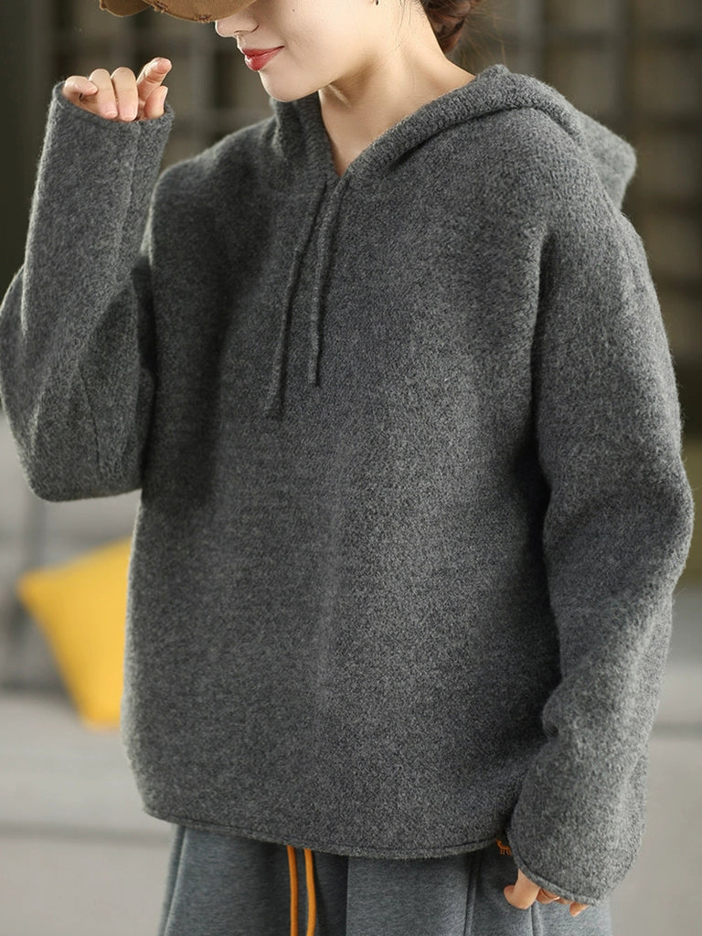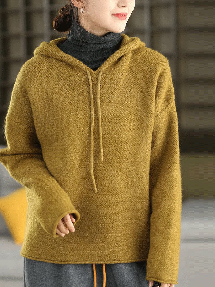 Women Autumn Artsy Pure Color Hooded Sweater