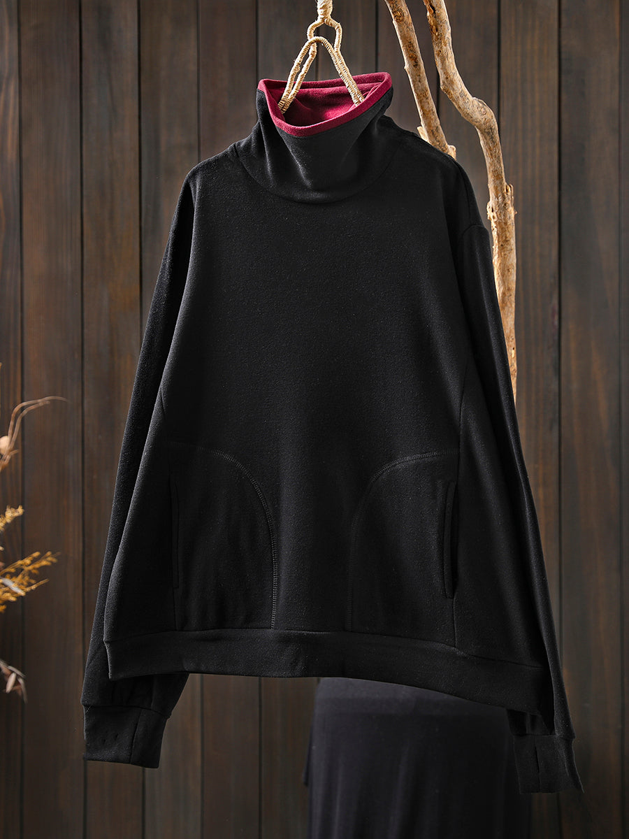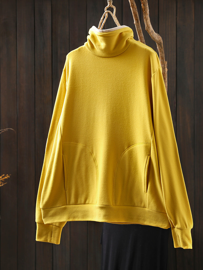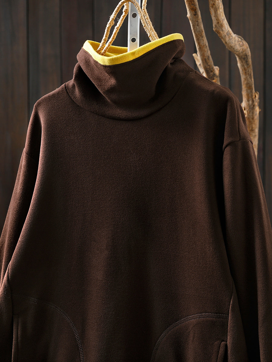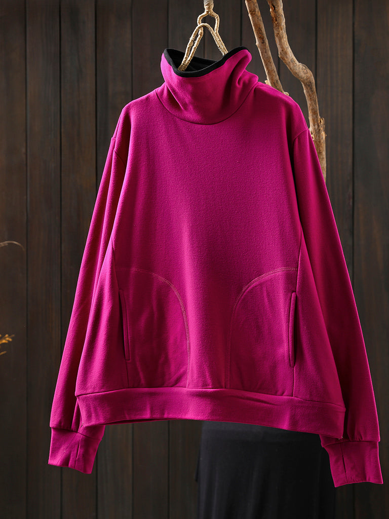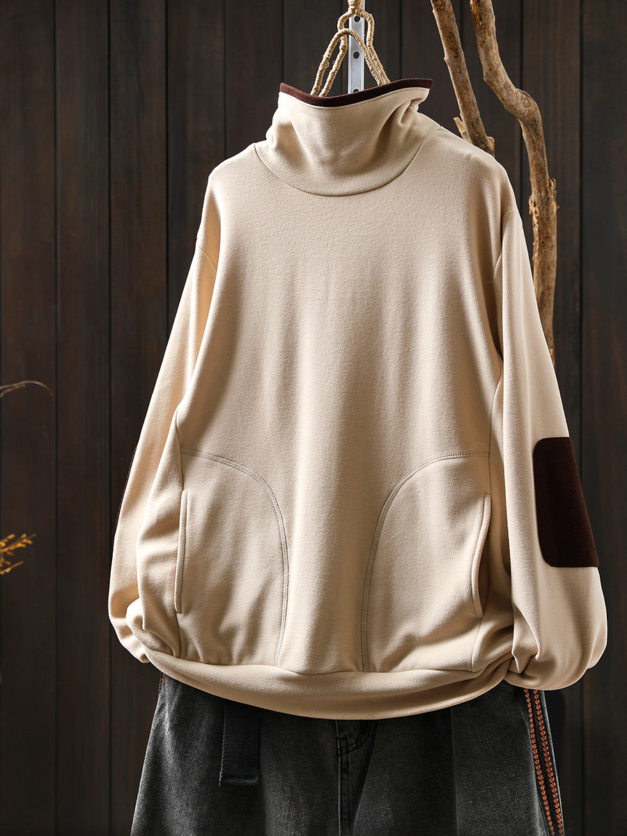 Women Casual Autumn Colorblock Turtleneck Cotton Blouse