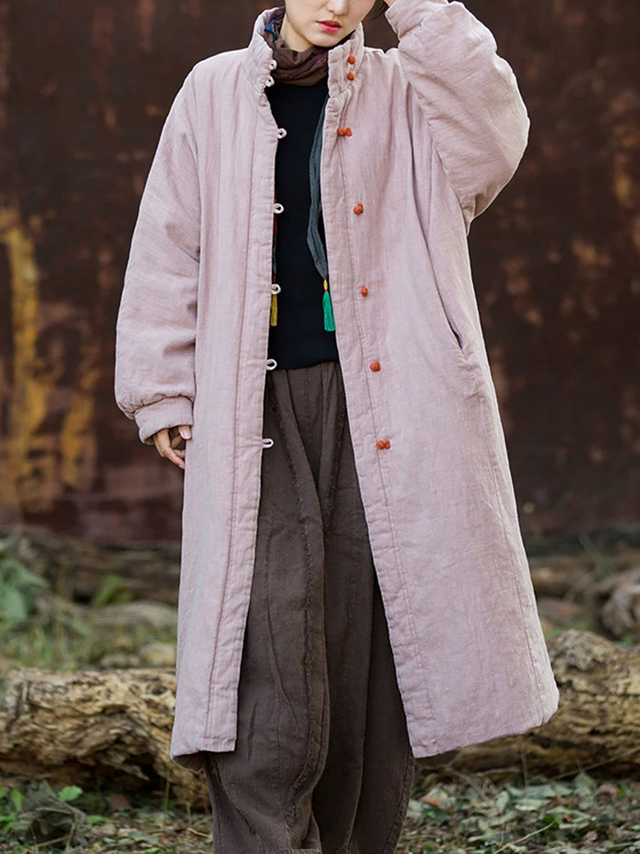 Women Winter Pure Color Stand Collar Padded Overcoat
