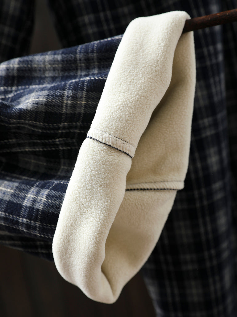 Women Winter Retro Plaid Fleece-lined Wide-leg Pants