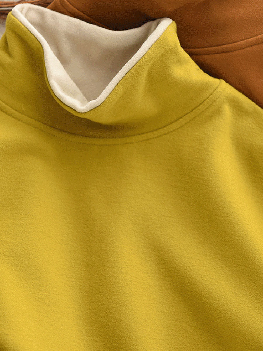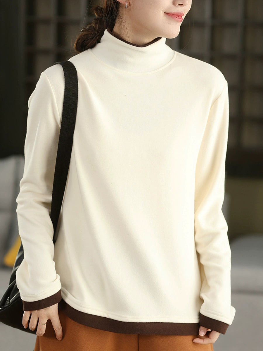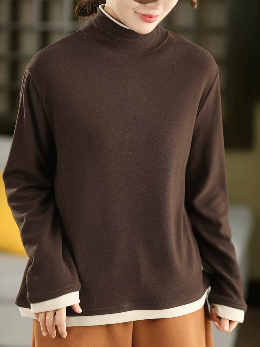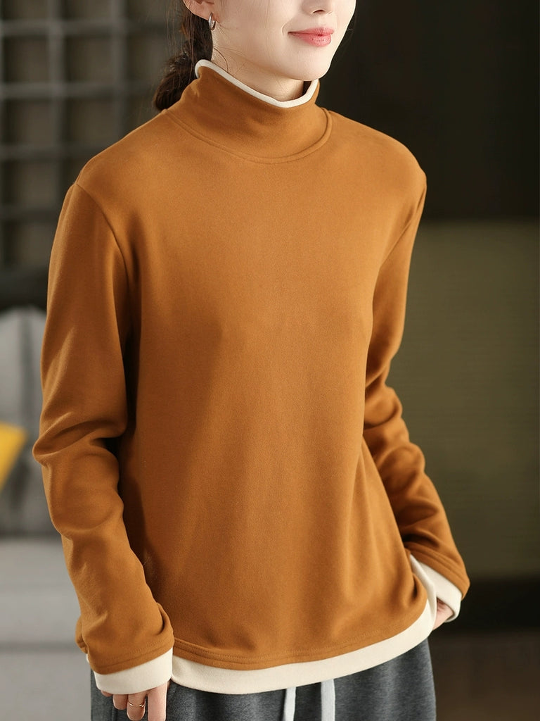 Women Winter Casual Colorblock Fleece Turtleneck Blouse
