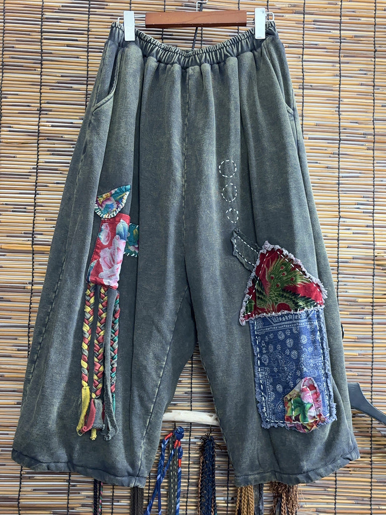 Women Winter Retro Patchwork O-Neck Tassel Suits