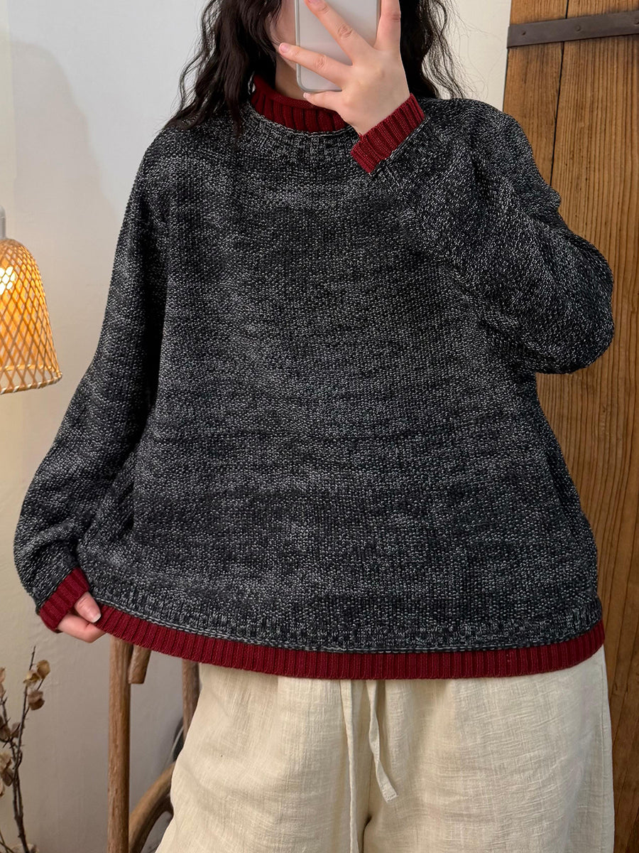 Women Autumn Artsy Colorblock Turtleneck Knitted Sweater