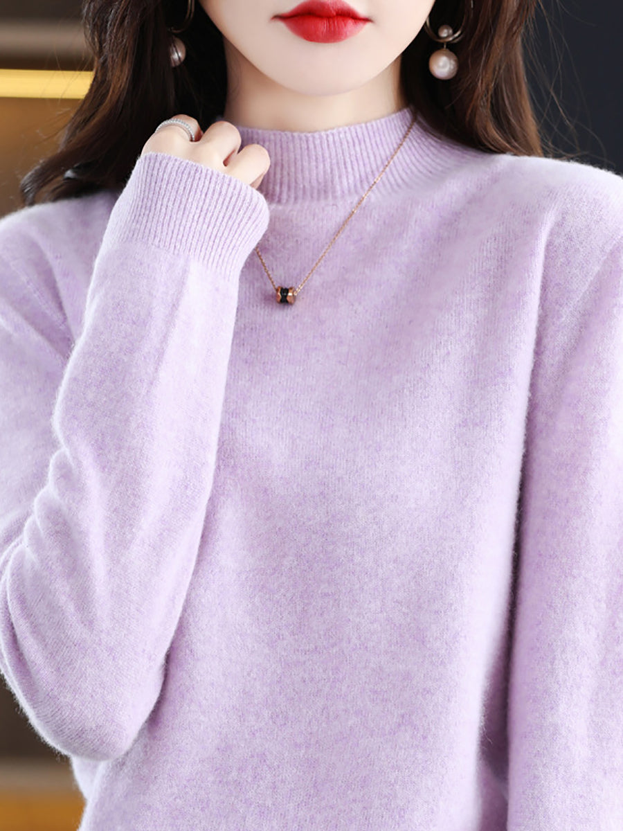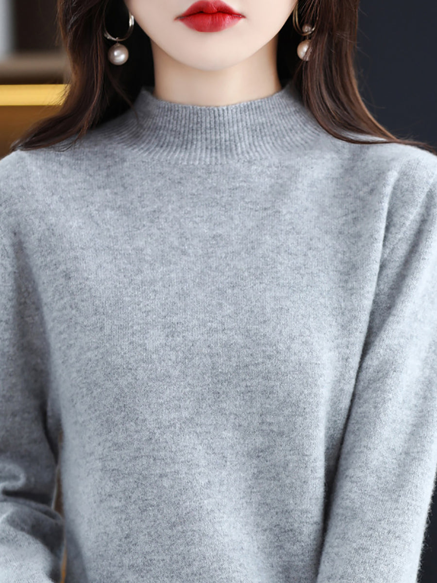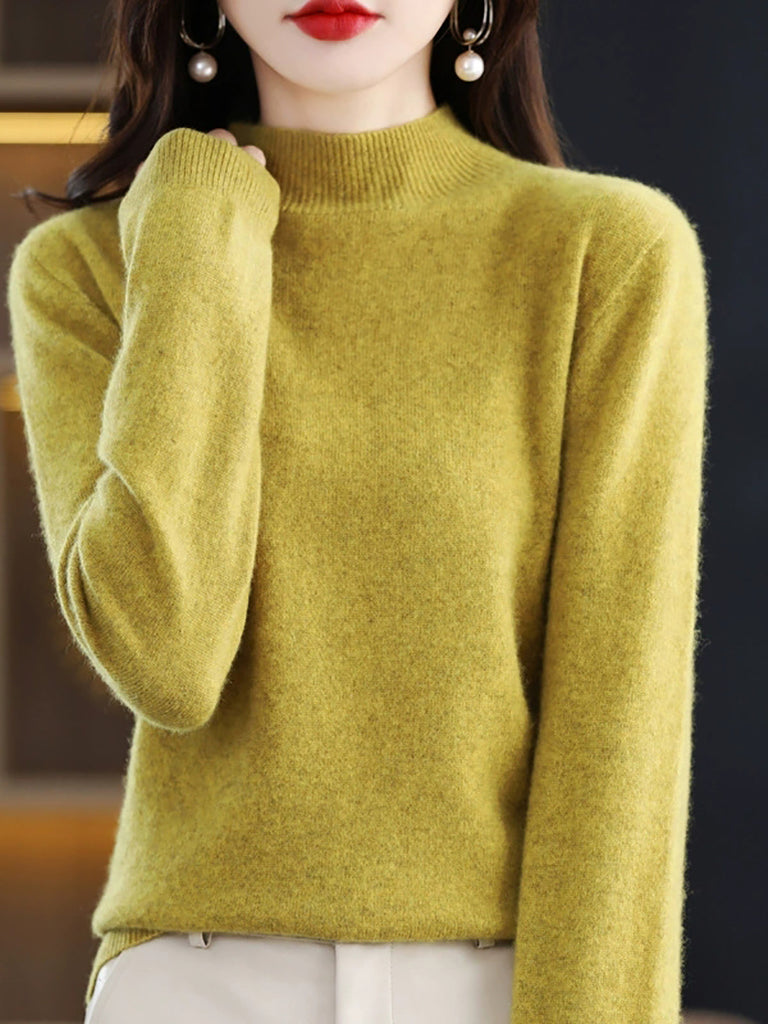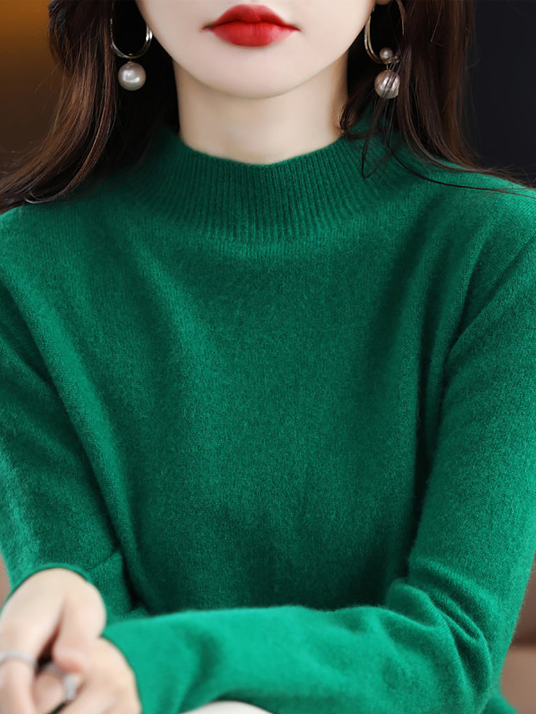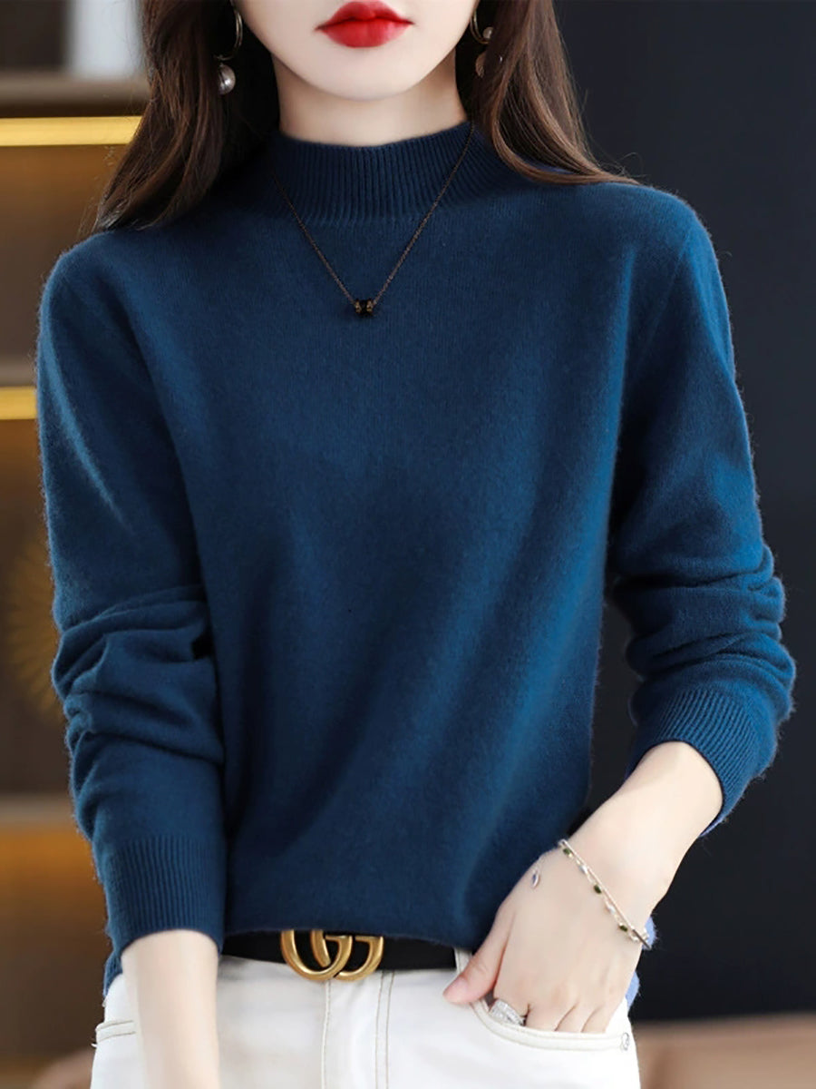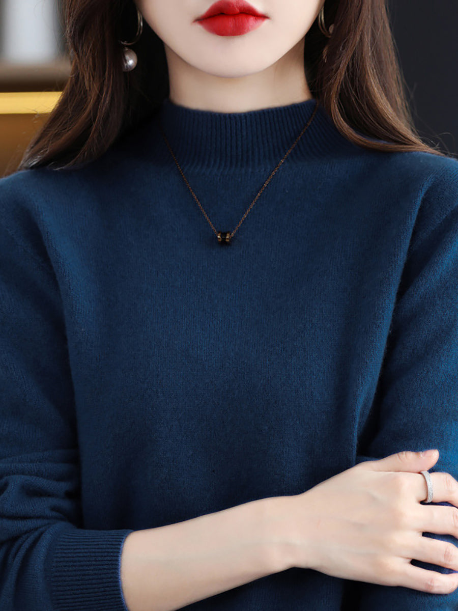 Women Winter Half-Turtleneck Knitted Wool Sweater