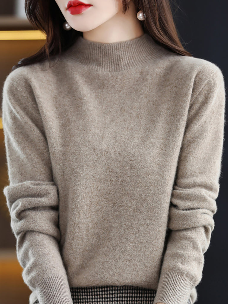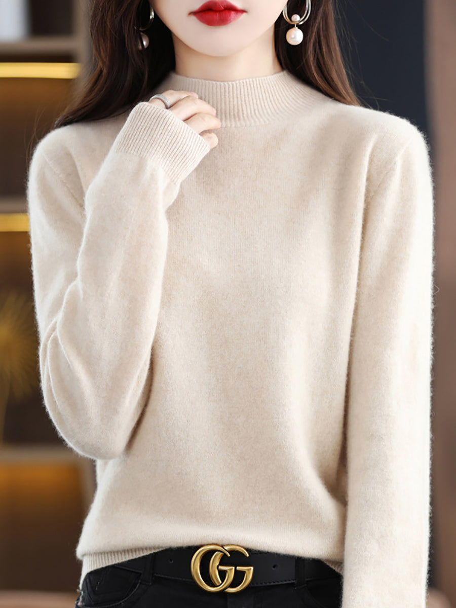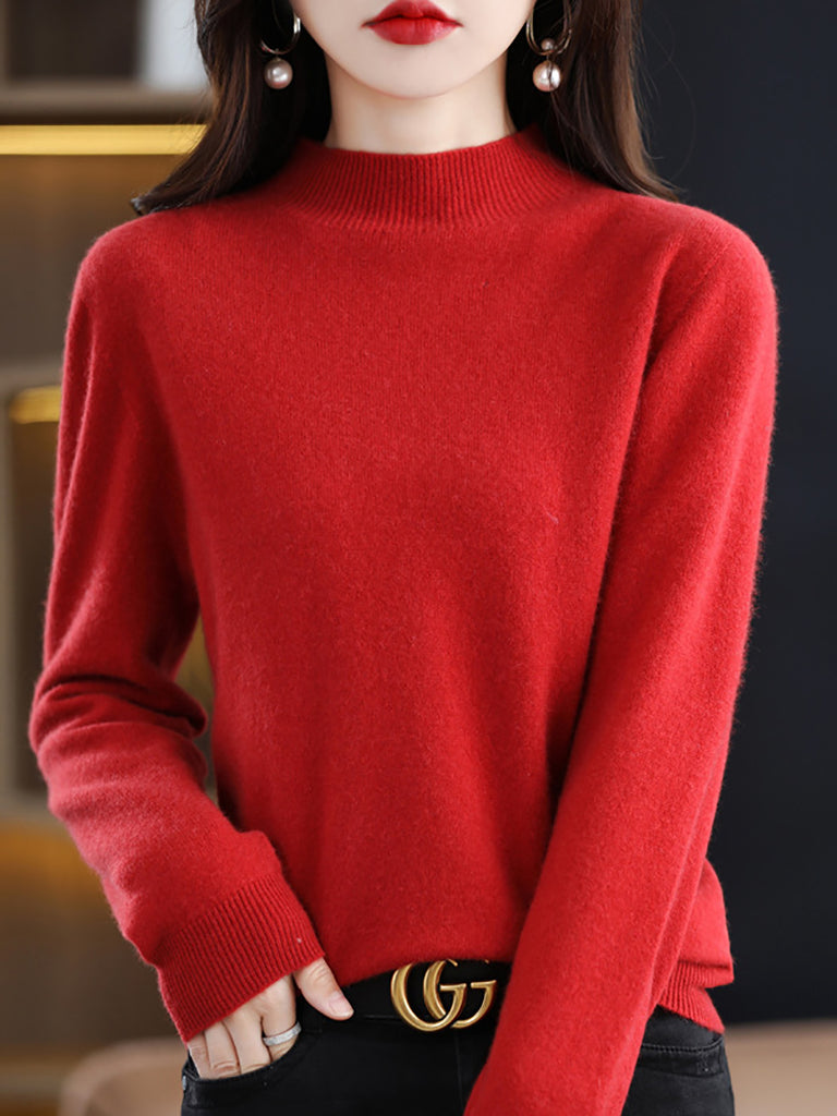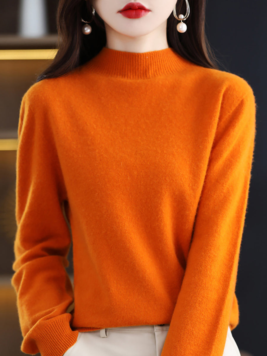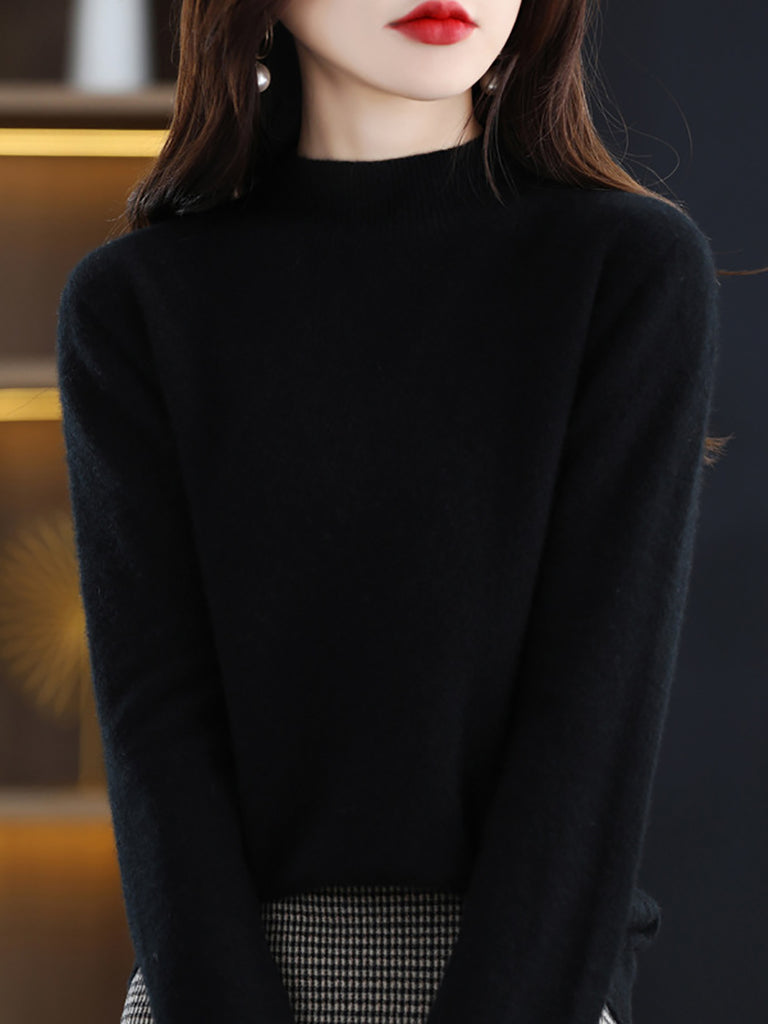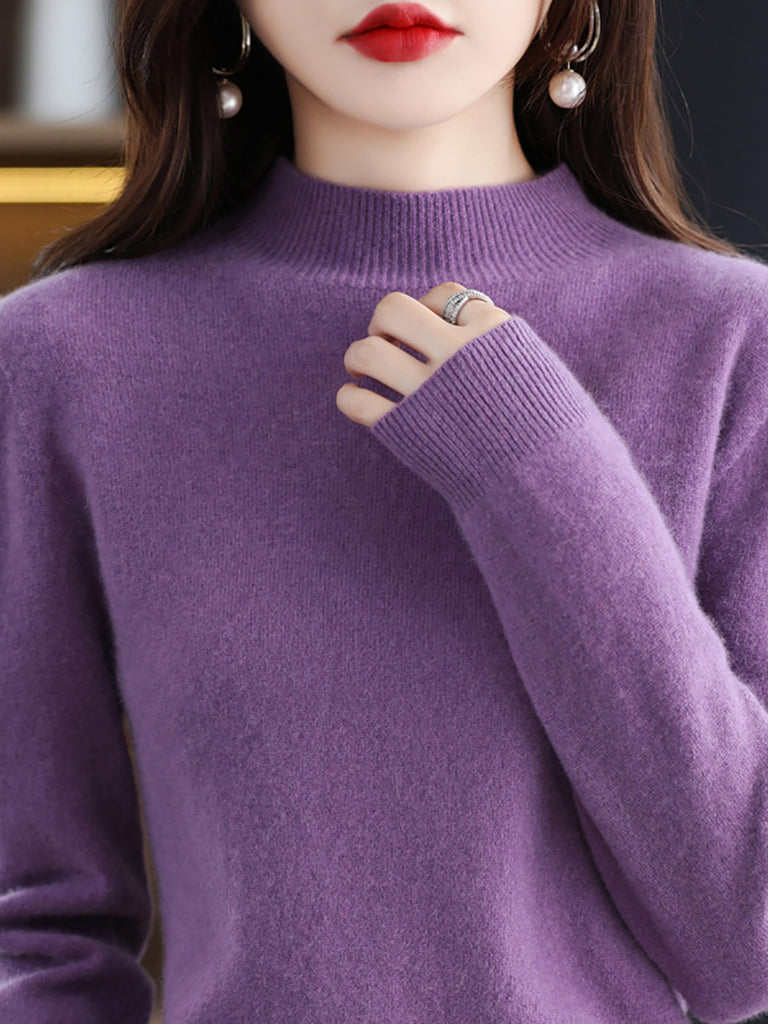 Women Winter Half-Turtleneck Knitted Wool Sweater