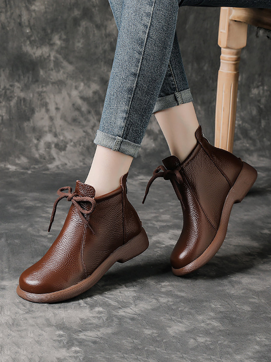 Women Vintage Genuine Leather Low Heel Boots