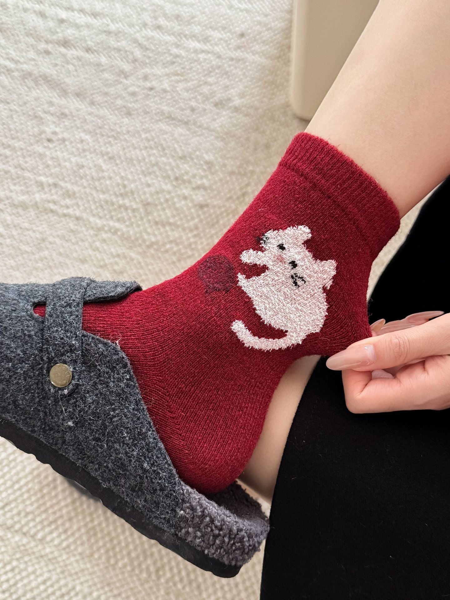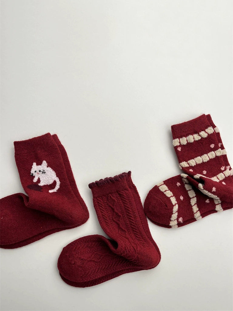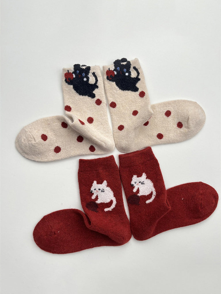 4 Pairs Winter Cute Cat Stripe Warm Socks