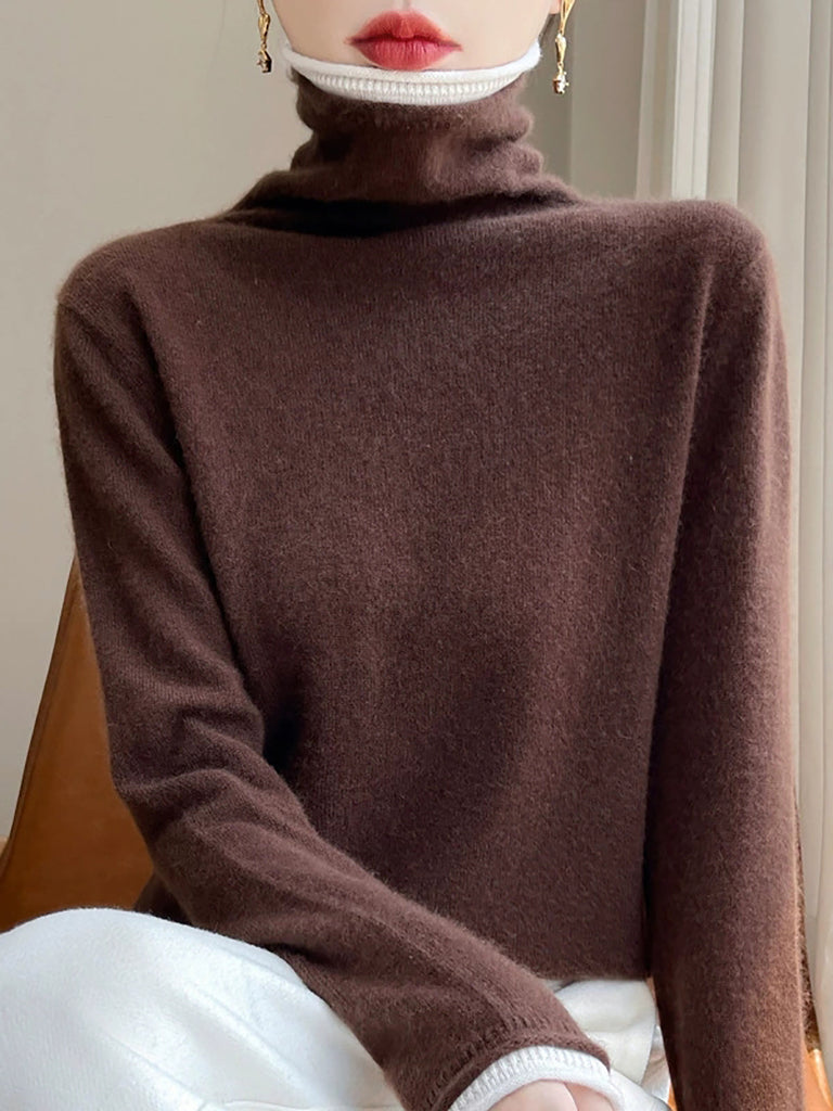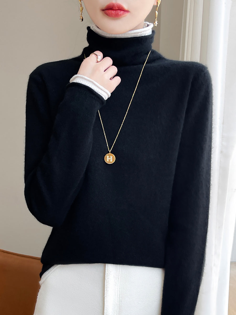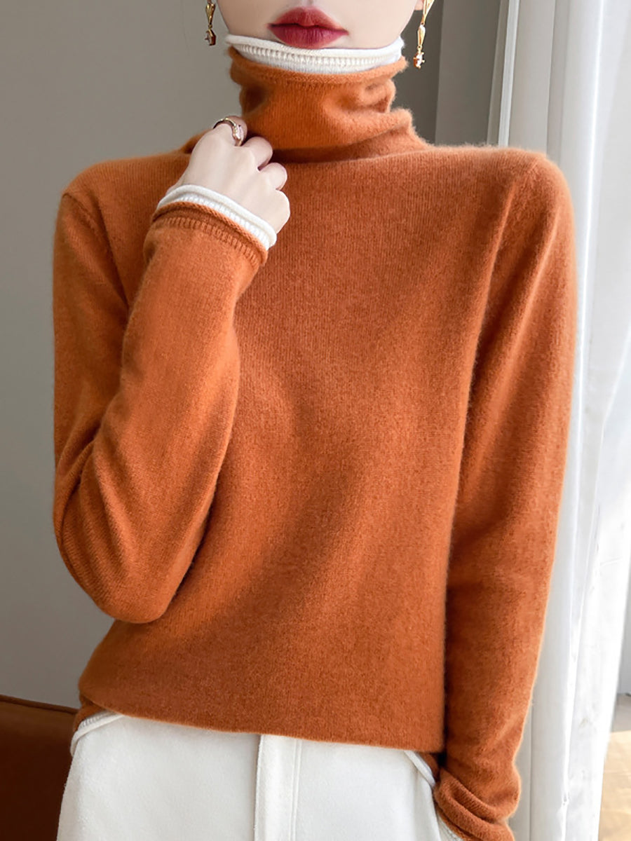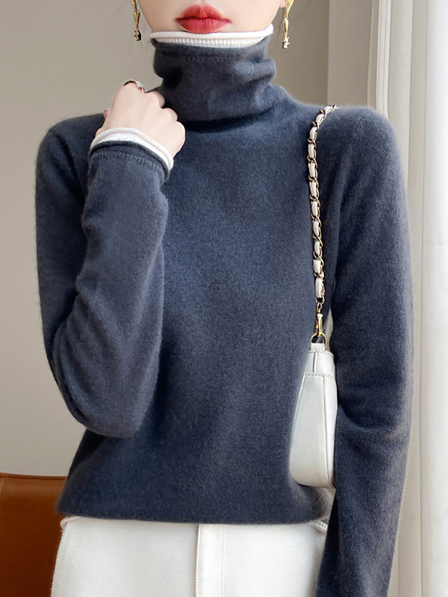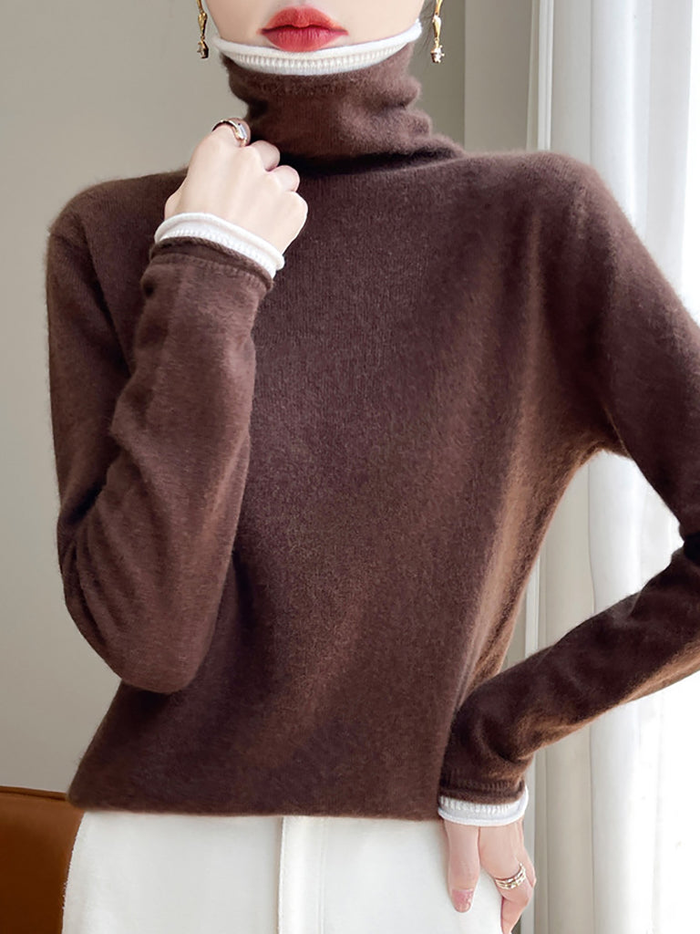 Women Winter Casual Colorblock Knitted Turtleneck Sweater