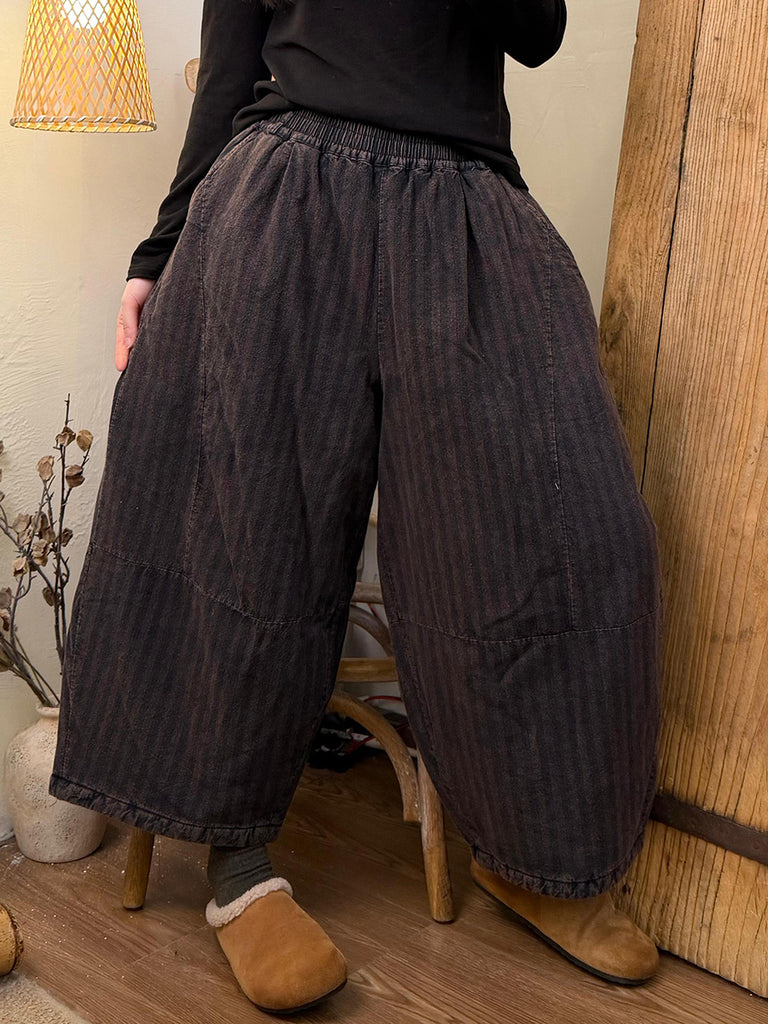 Women Winter Retro Plaid Stripe Straight Padded Pants