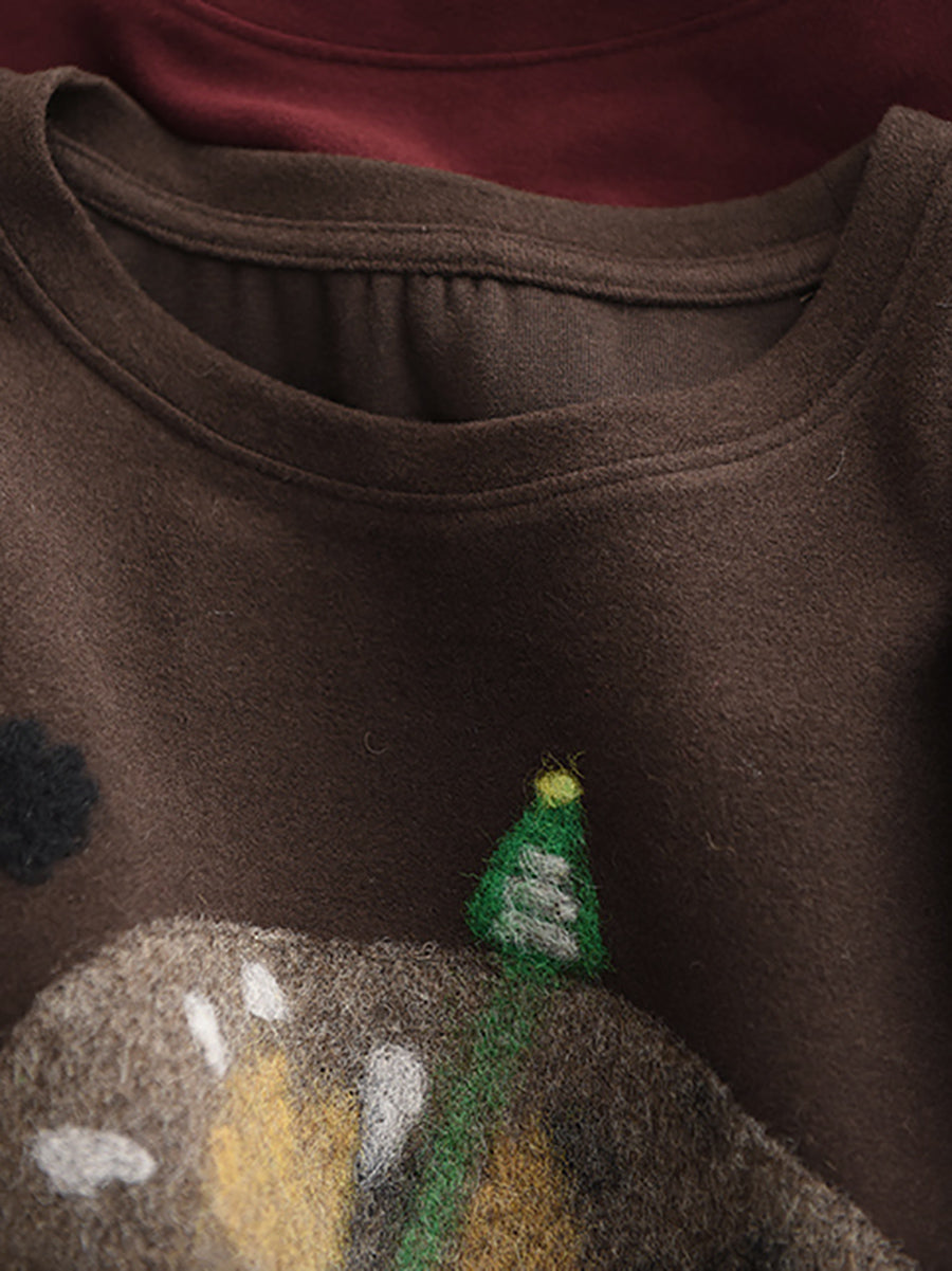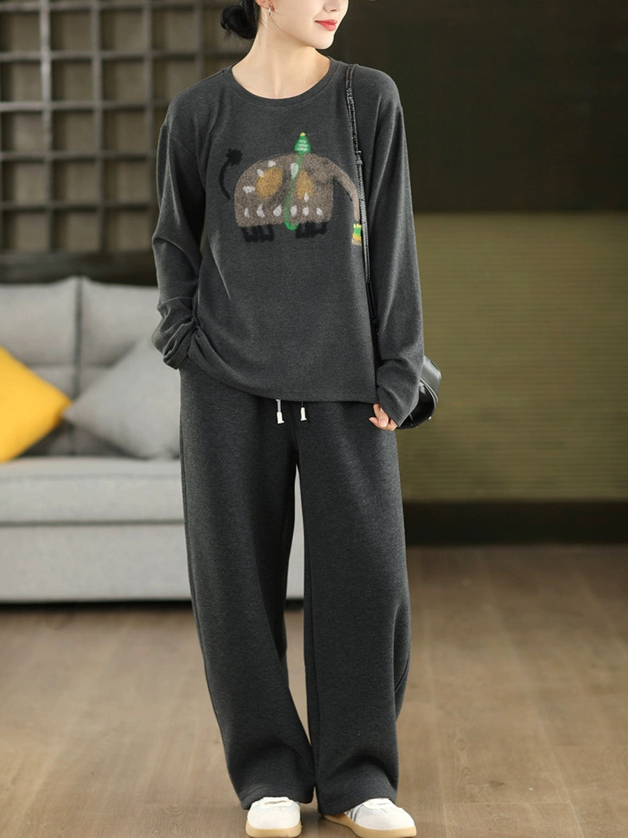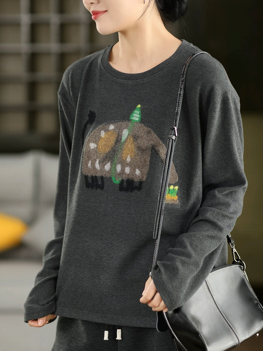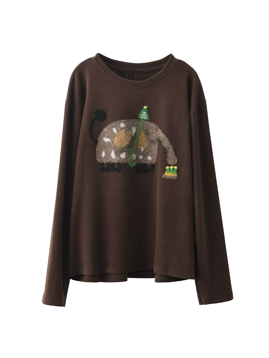 Women Winter Artsy Elephant Flocking O-Neck Blouse
