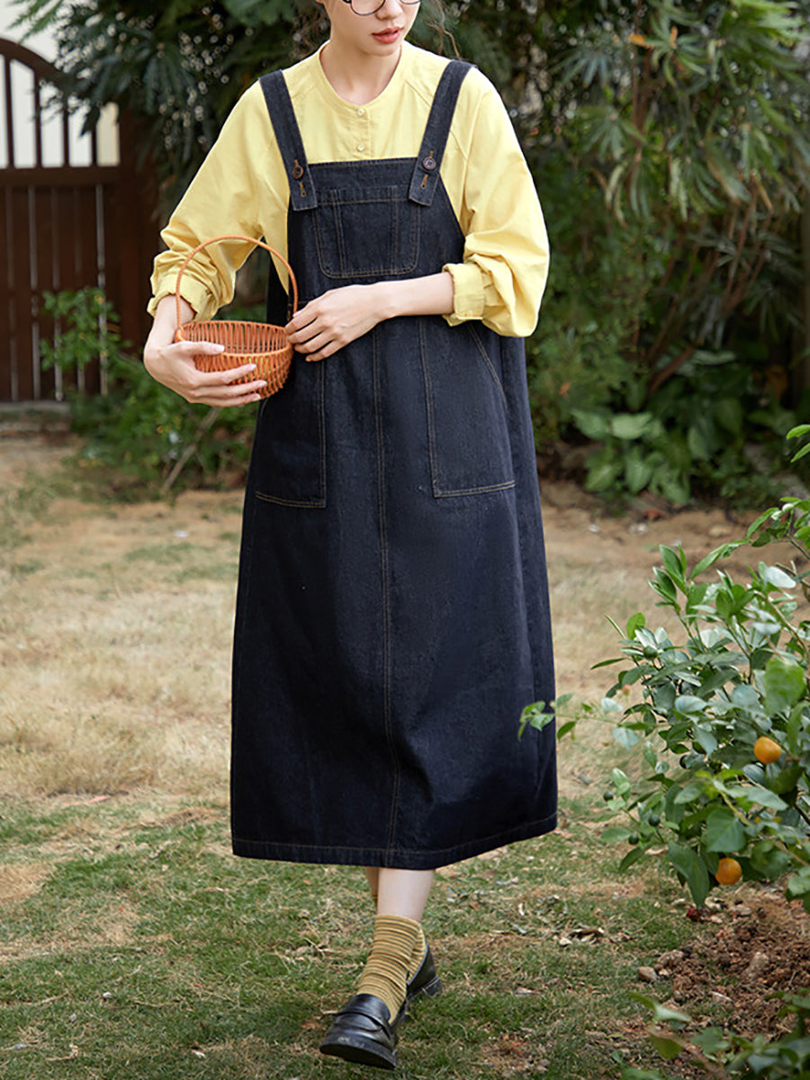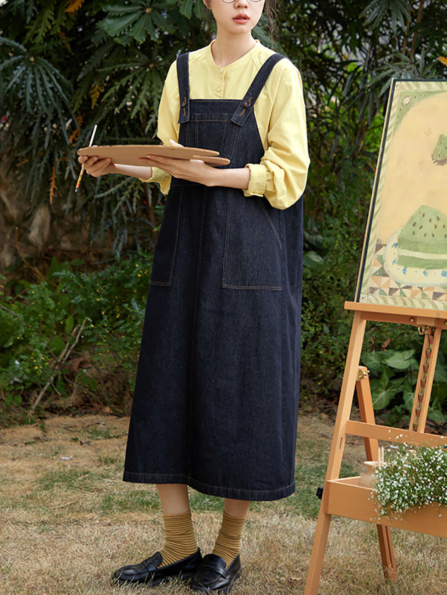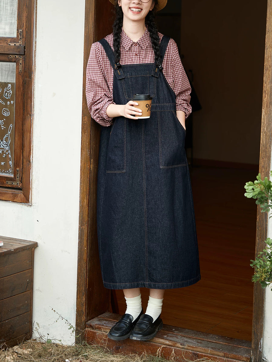 Crafted from premium 100% cotton, this ankle-length denim overall dress combines timeless retro aesthetics with versatile solid coloring. Designed for transitional seasons, it transitions seamlessly from spring through autumn, offering both comfort and enduring style. The classic overall silhouette delivers practical functionality while maintaining sophisticated simplicity.