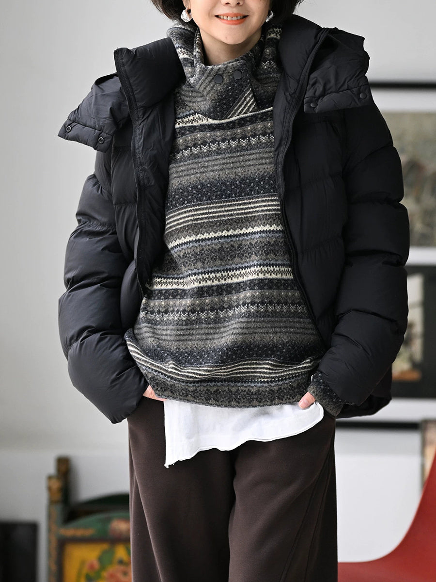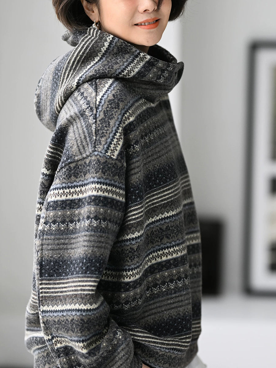 Women Winter Retro Stripe Knitted Hooded Sweater