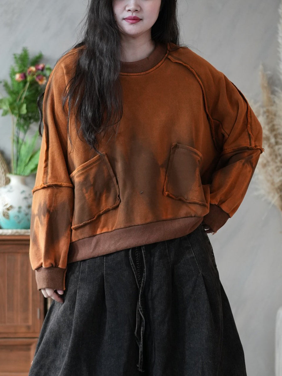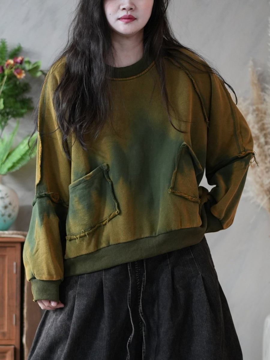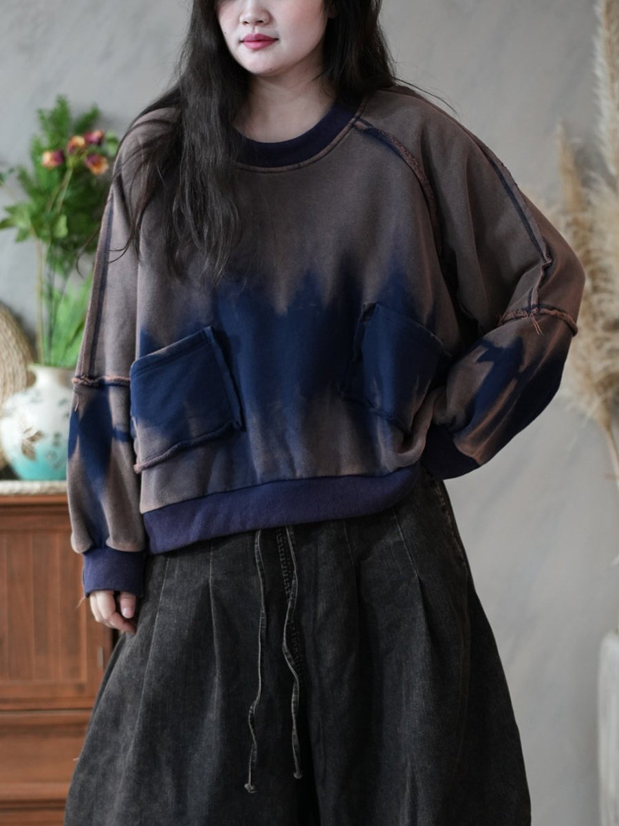 Women Retro Spring Tie-dye Spliced Blouse