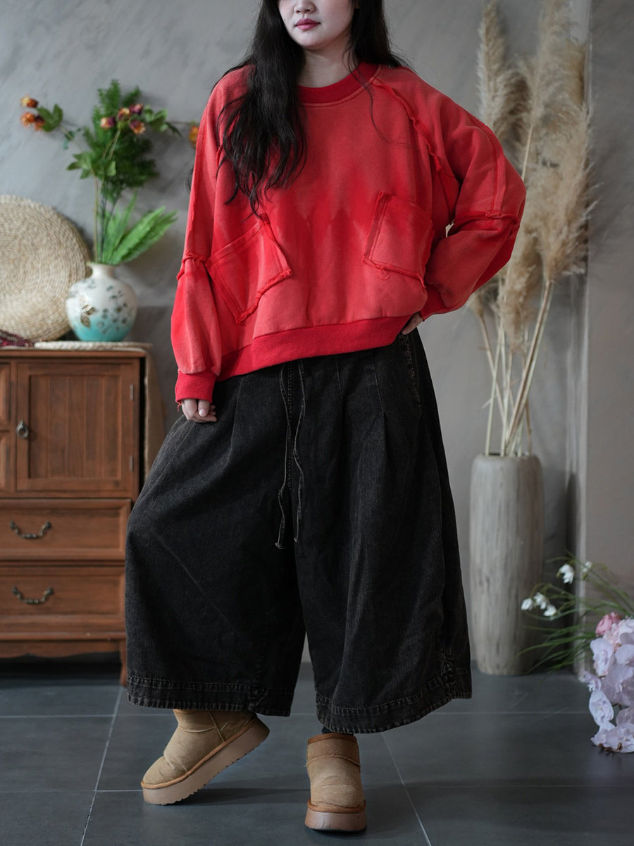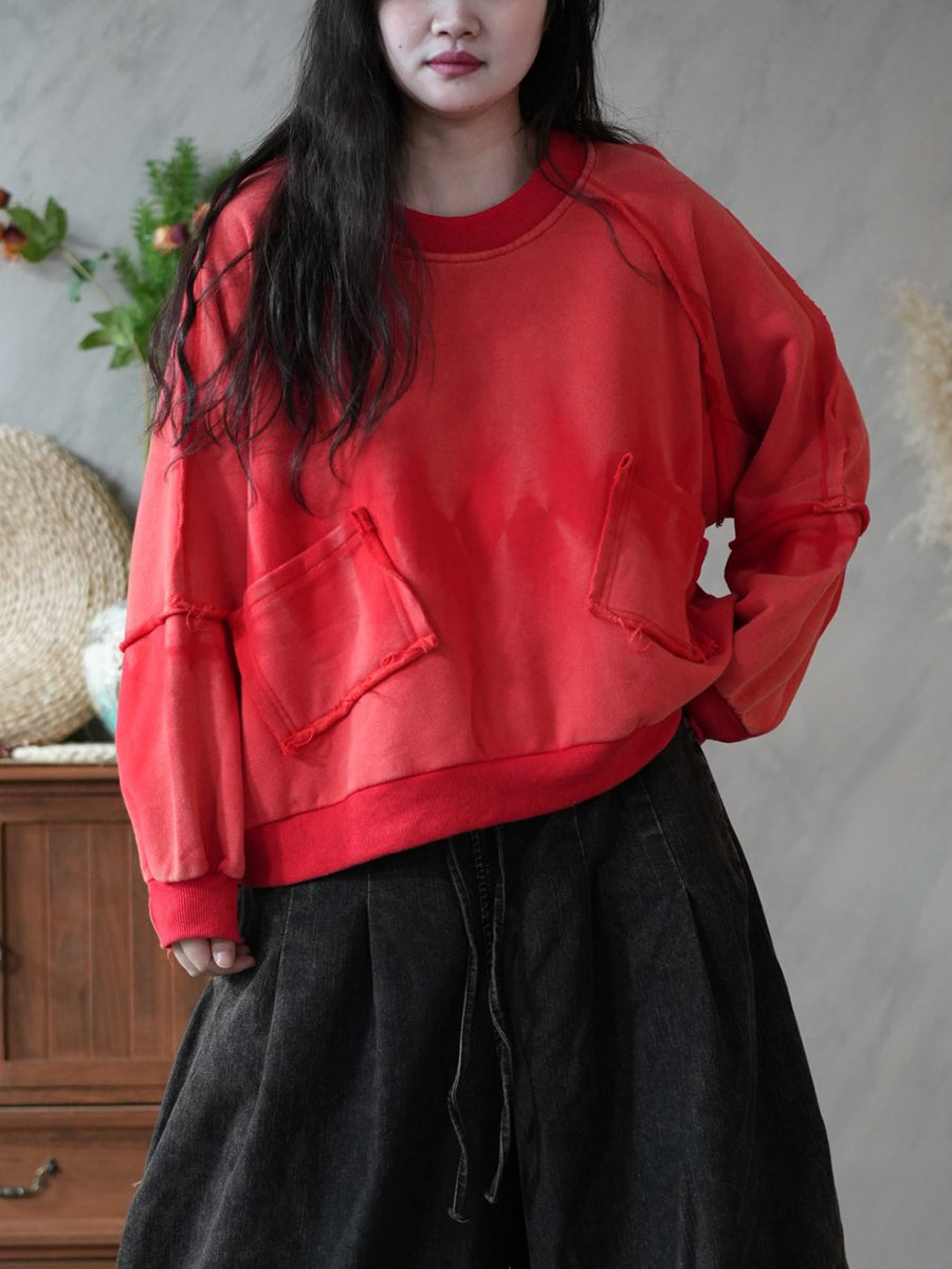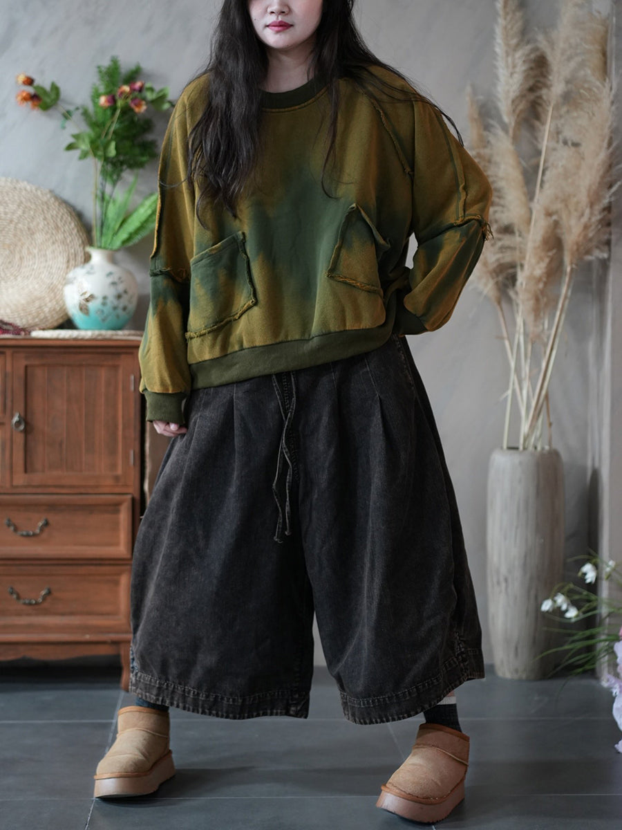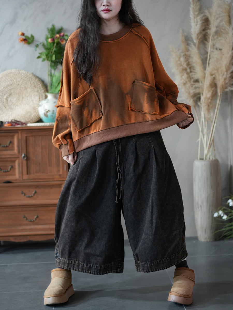 Women Retro Spring Tie-dye Spliced Blouse