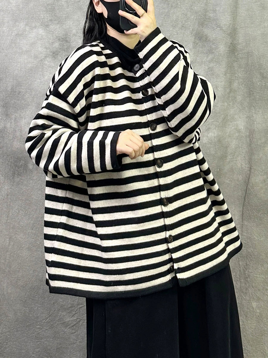 Women Artsy Spring Stripe O-Neck Knitted Cardigan