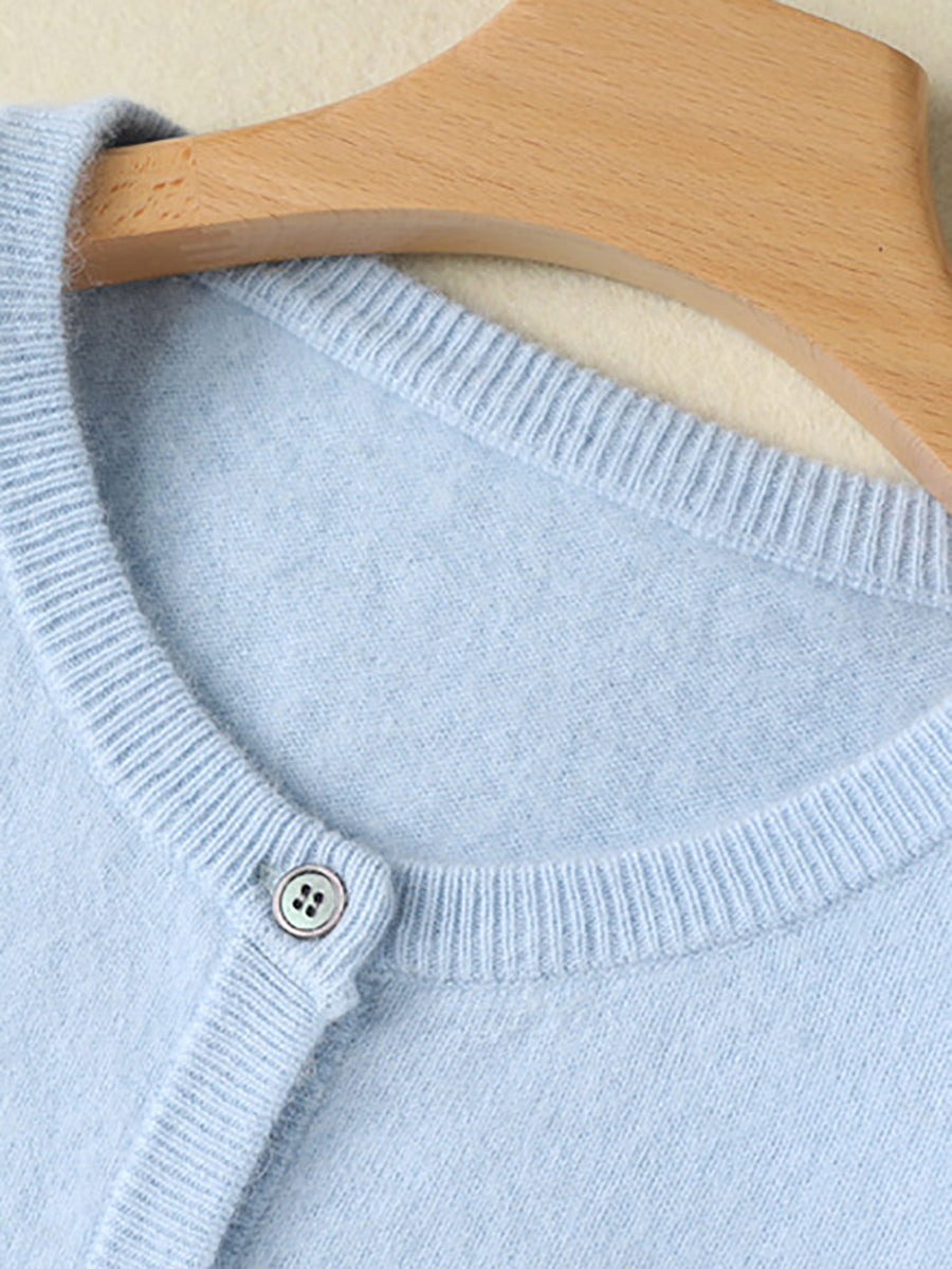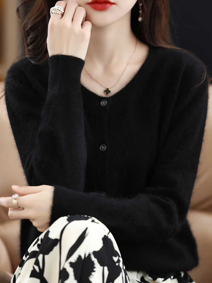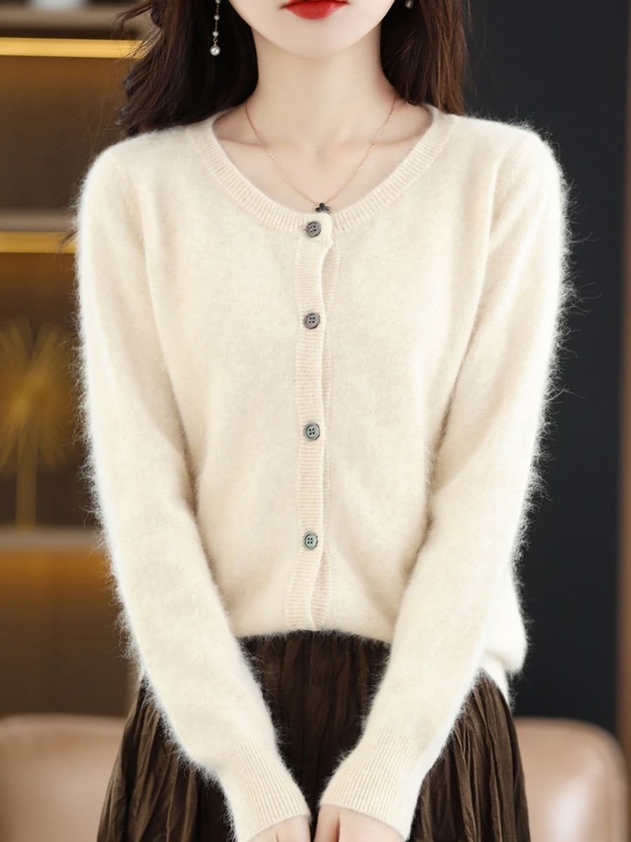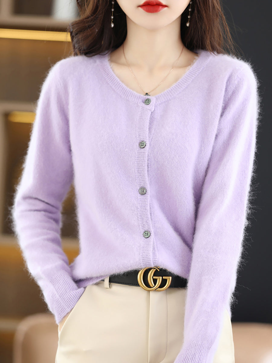 Women Autumn Artsy Pure Color O-Neck Cardigan Sweater