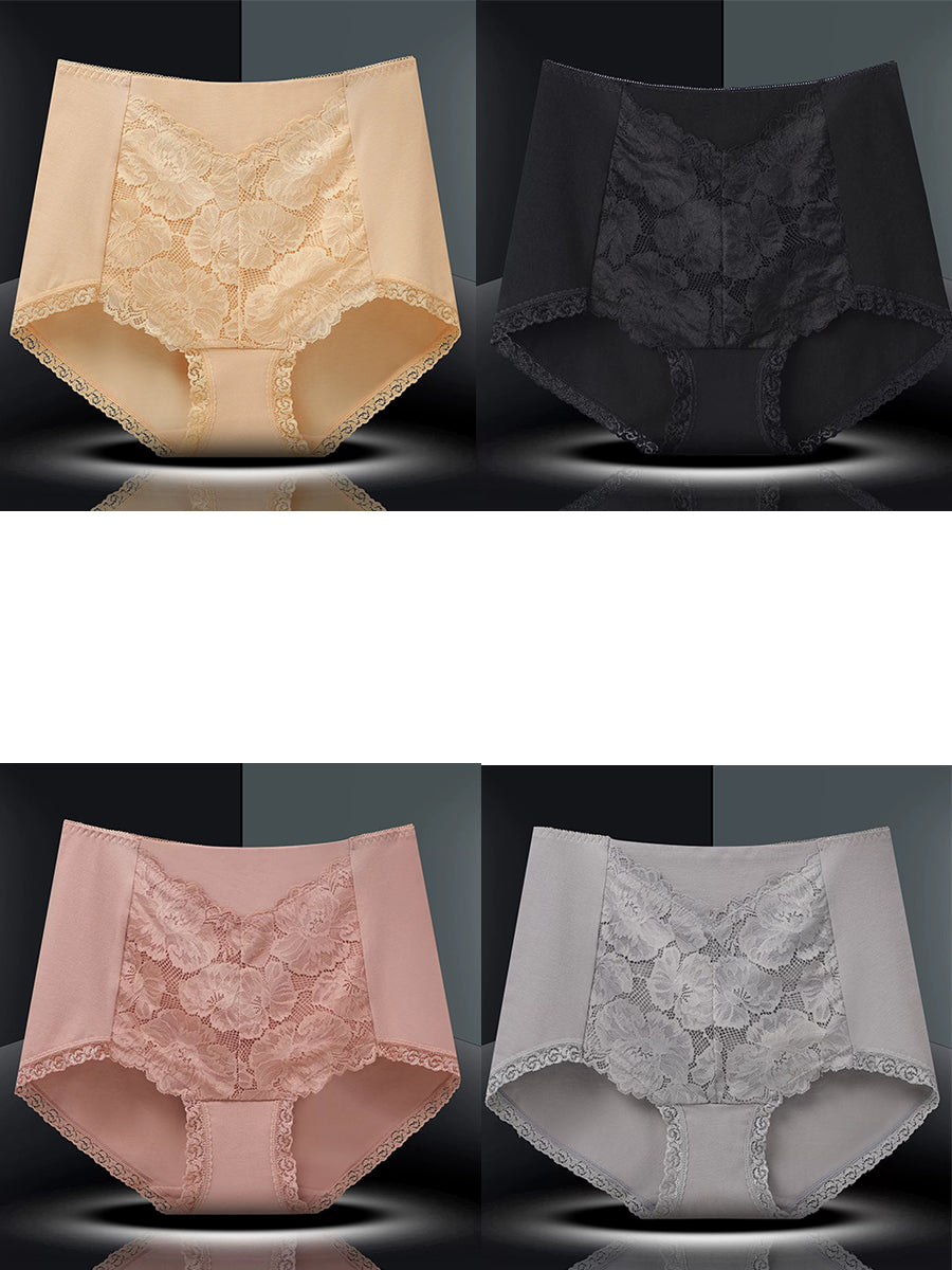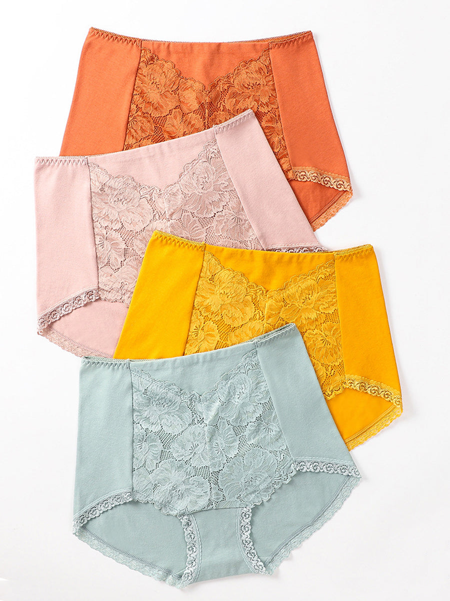 4 Pieces Women Artsy Flower Spliced High Waist Underwear